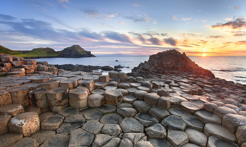 Giant Causeway (Bắc Ireland): Phần bờ biển Đại Tây Dương ở Bắc Ireland được tạo thành từ hơn 40.000 viên đá bazan hình khối (chủ yếu là hình lục giác). Các nhà khoa học cho rằng, các viên đá này được tạo thành khi dung nham chảy ra biển từ 50 đến 60 triệu năm trước.