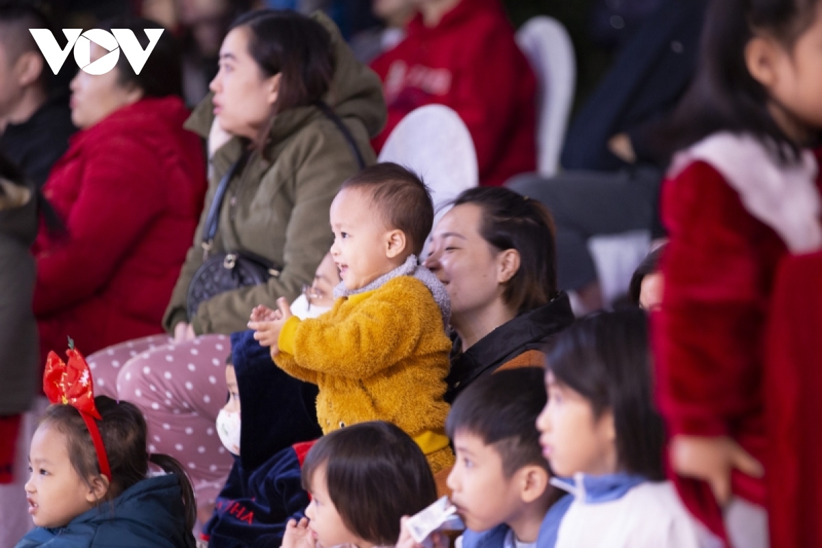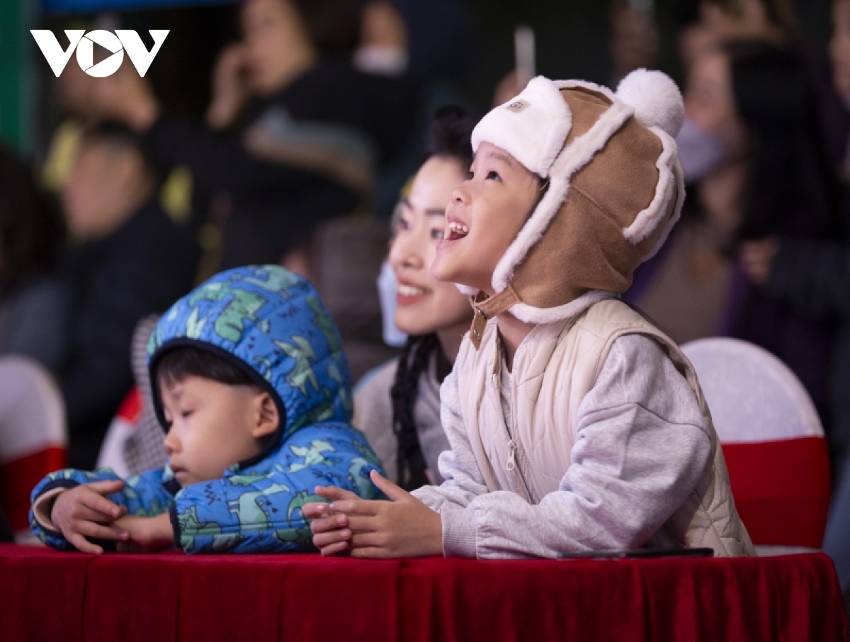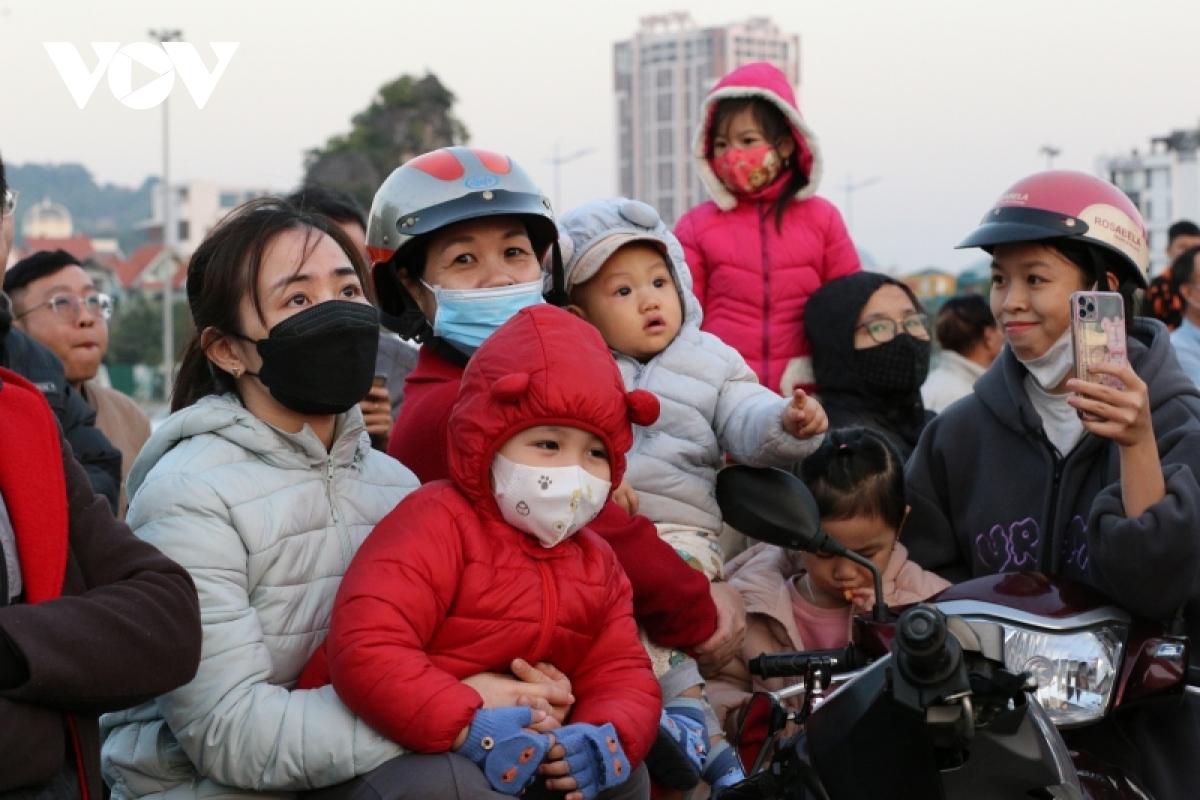 Rất đông phụ huynh đưa các em nhỏ đến Quảng trường 30/10, thành phố Hạ Long, tỉnh Quảng Ninh xem múa lân. |