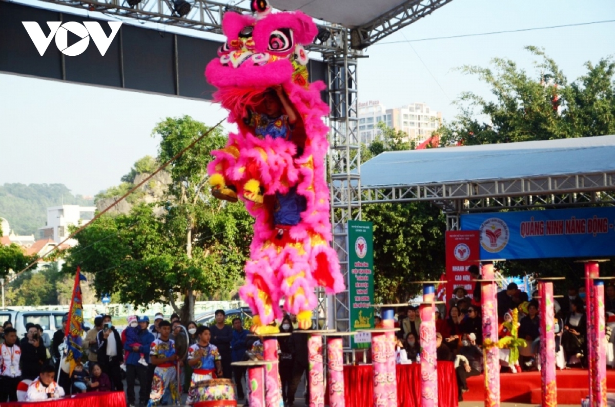 Kết quả chung cuộc ở nội dung Leo cột không hái lộc đồng đội, đội Lân sư rồng Quảng Ninh giành Huy chương Vàng với 8,20 điểm. |