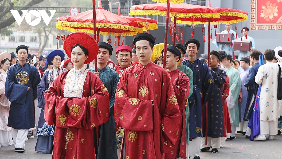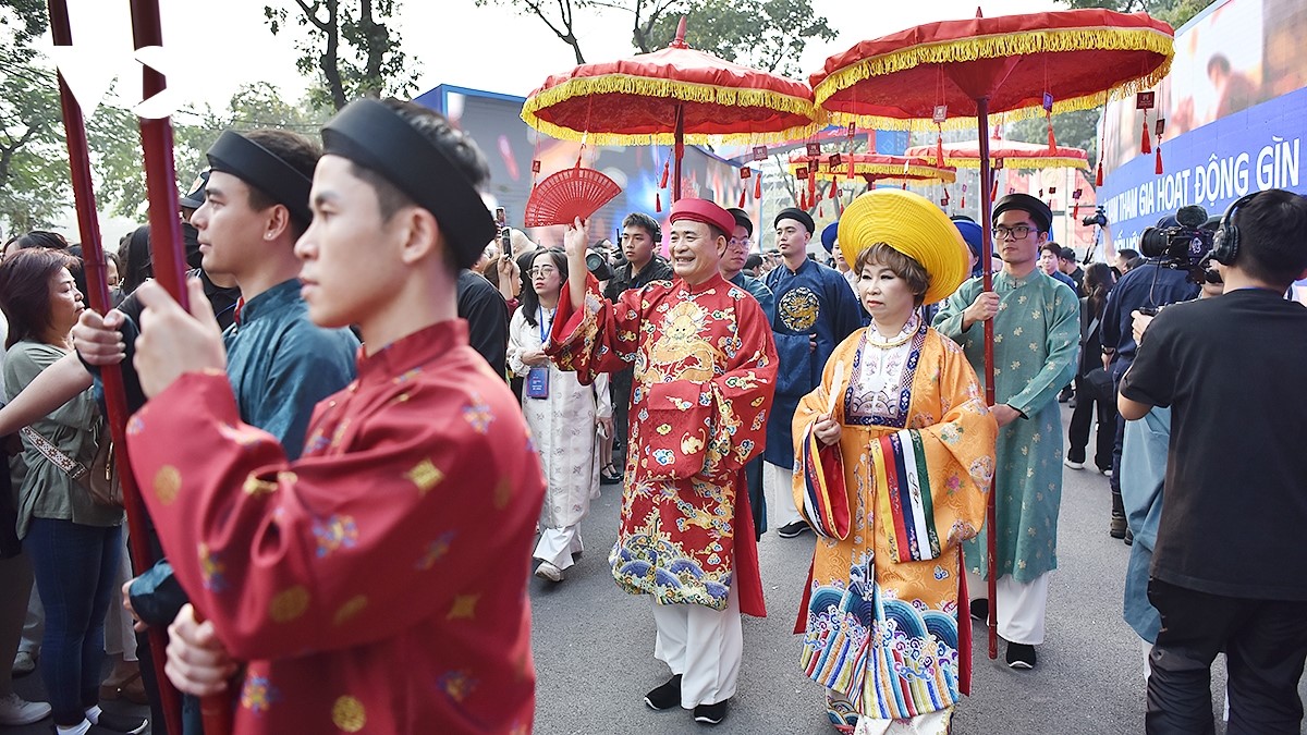 Việc tái hiện nghi lễ cưới truyền thống trong khuôn khổ Ngày hội góp phần khuyến khích thế hệ trẻ tìm hiểu, trân trọng và tiếp nối những giá trị đẹp của nếp sống Việt. |
