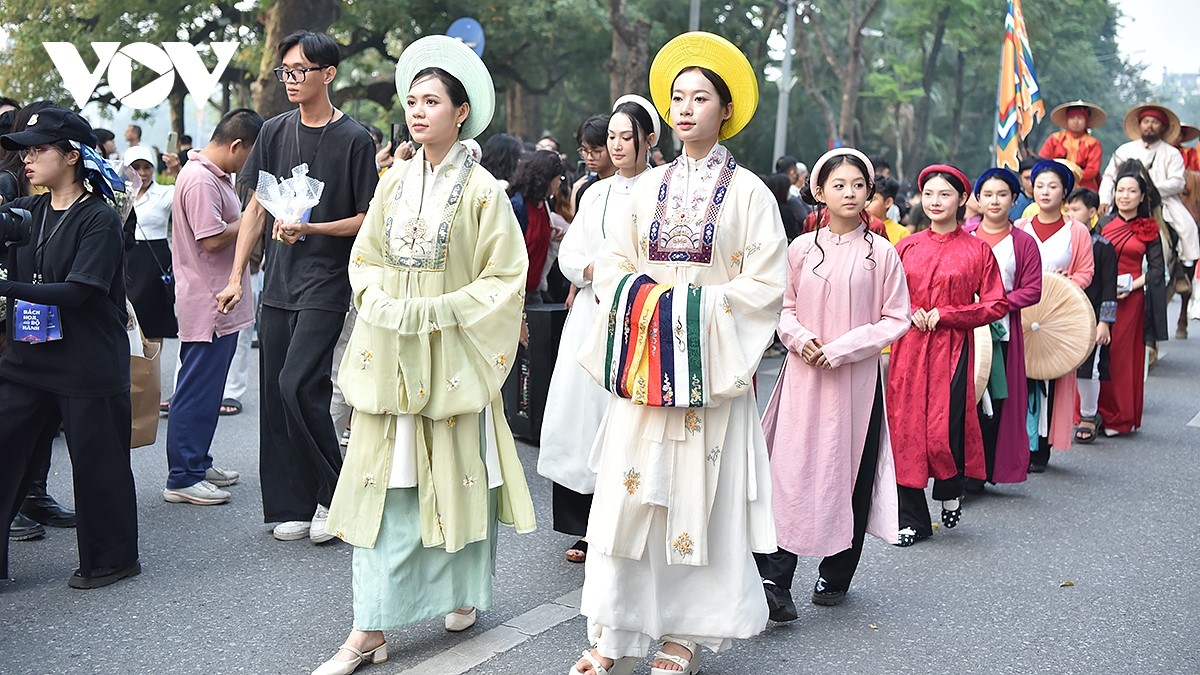 Đoàn diễu hành Việt phục “Bách Hoa Hỷ Sự” có sự tham gia của các nhóm nghiên cứu, thực hành văn hóa và cộng đồng yêu thích Việt phục góp phần lan tỏa mạnh mẽ hơn các giá trị văn hóa bản địa. |