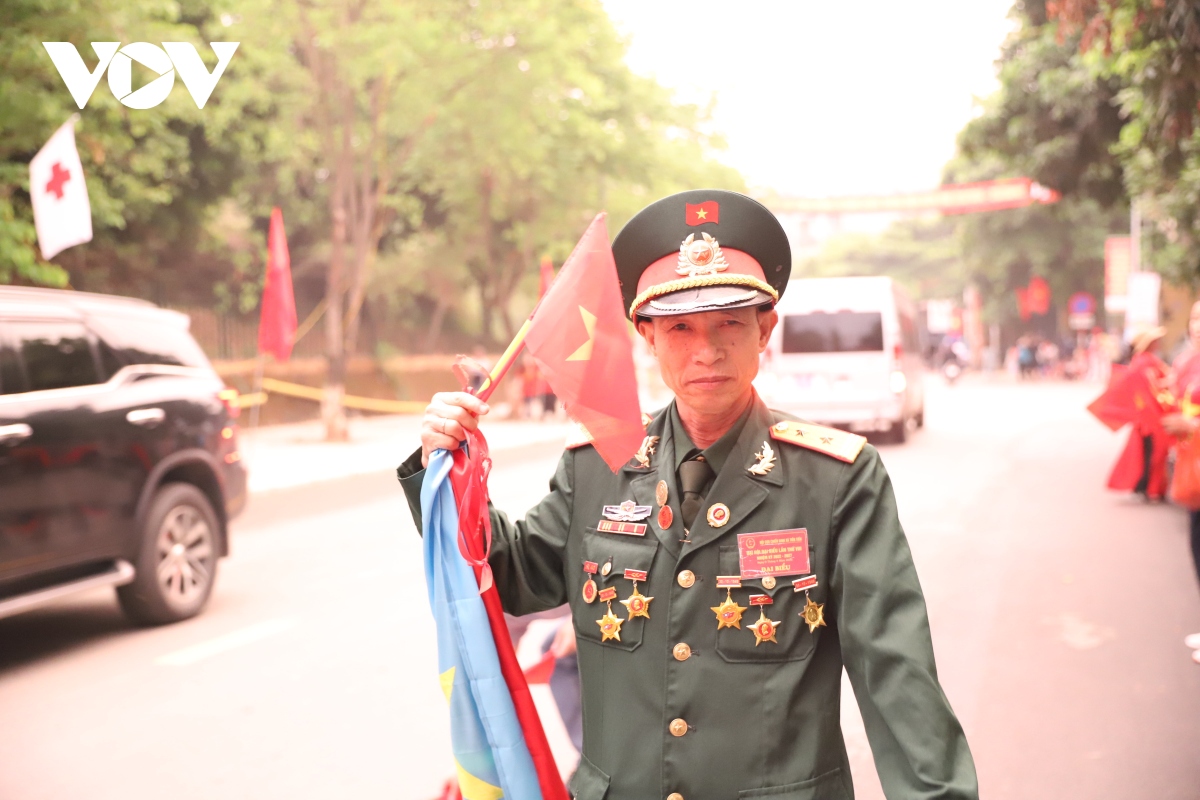 Nhiều cựu chiến binh có mặt từ sáng sớm với những tấm huy chương lấp lánh trên ngực. |