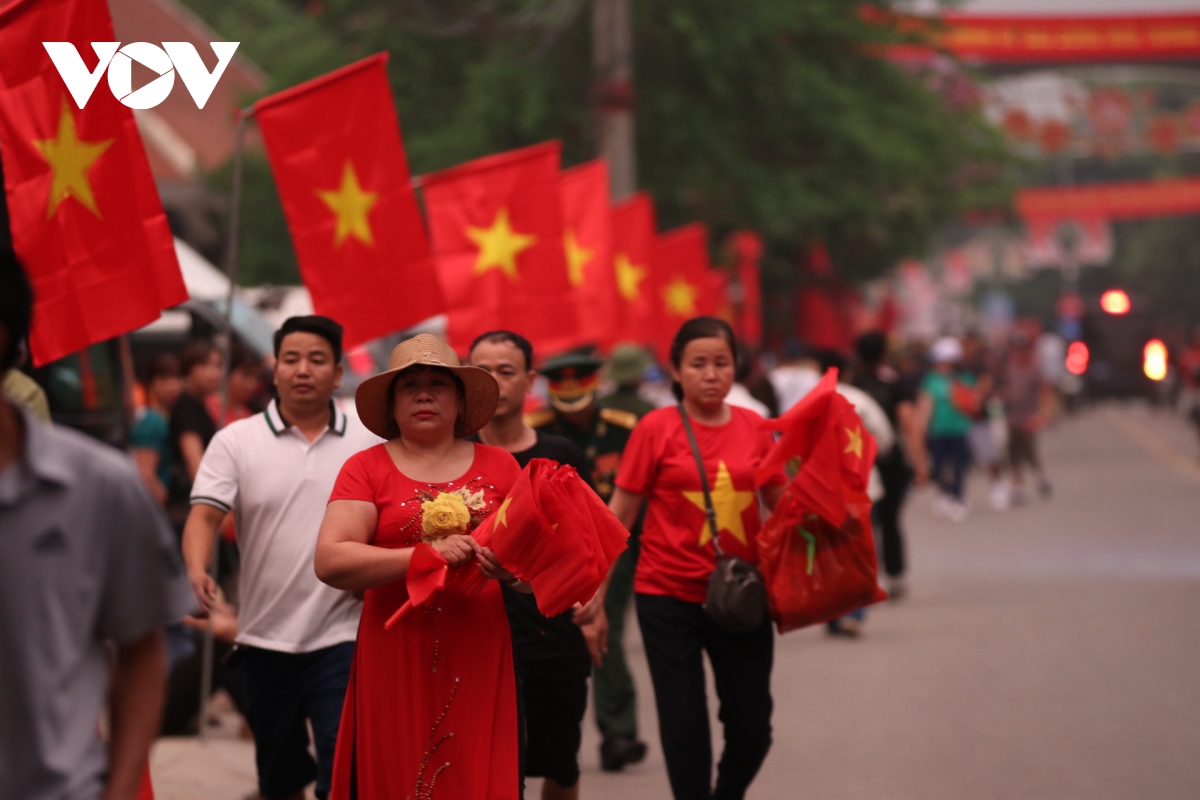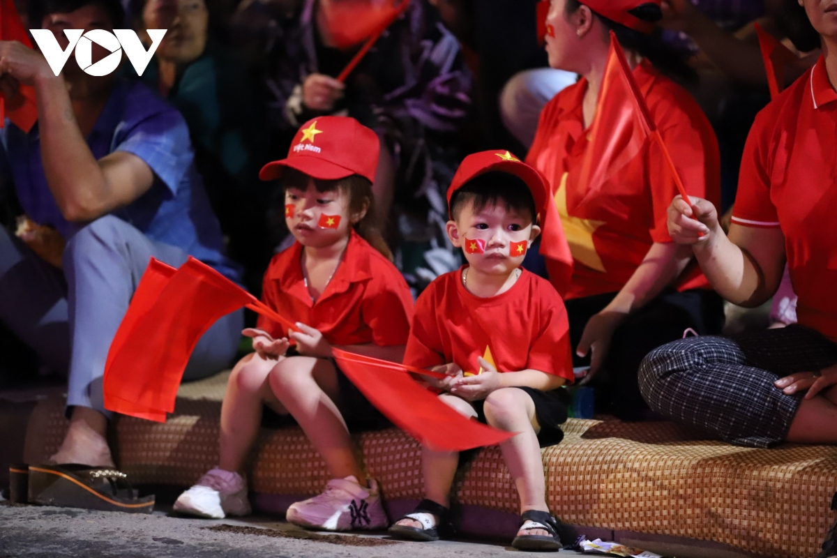 Các em nhỏ cũng háo hức mặc áo cờ đỏ sao vàng, dán cờ Tổ quốc, theo chân bố mẹ, ông bà dậy từ sớm để tìm chỗ ngồi chờ xem diễu binh, diễu hành. |