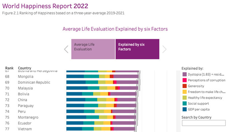 Việt Nam xếp hạng 77 trong số các quốc gia hạnh phúc nhất thế giới năm 2022. Ảnh: Mạng lưới Giải pháp Phát triển Bền vững của Liên Hợp Quốc |