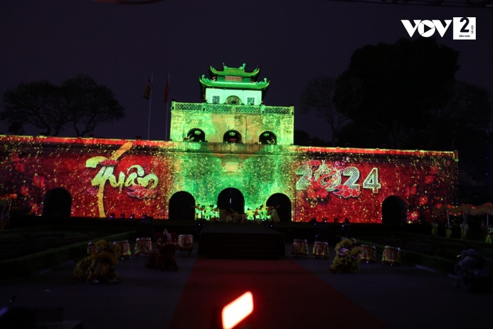 Chương trình sử dụng công nghệ 3D mapping bao gồm 3 phần: Hào khí Thăng Long, Văn hóa ngàn năm, Việt Nam rạng ngời, được dàn dựng công phu với nhiều tiết mục đặc sắc chào đón Xuân Giáp Thìn. |