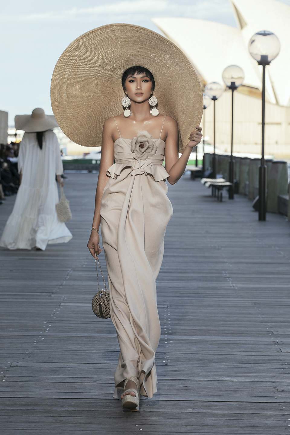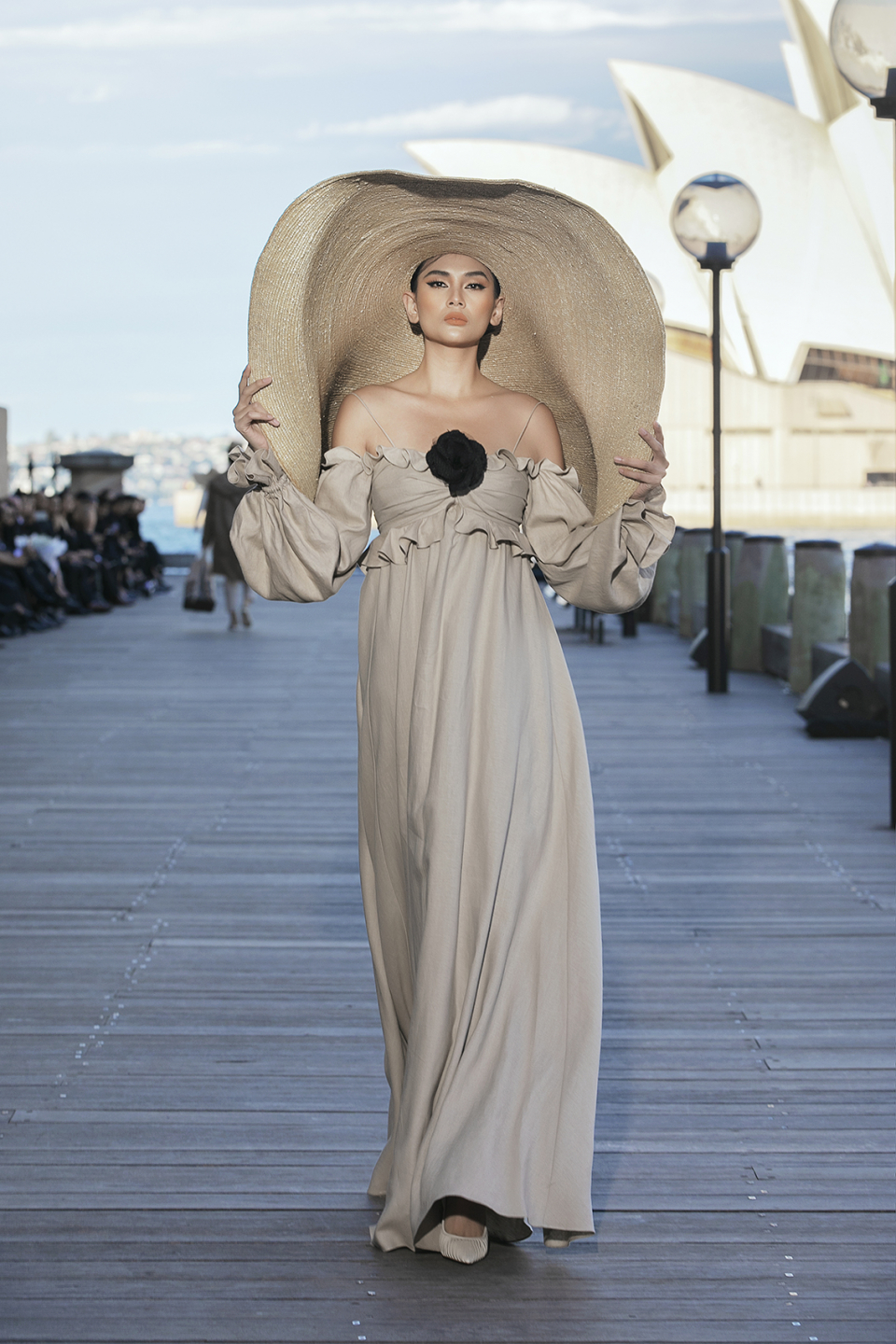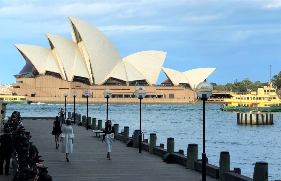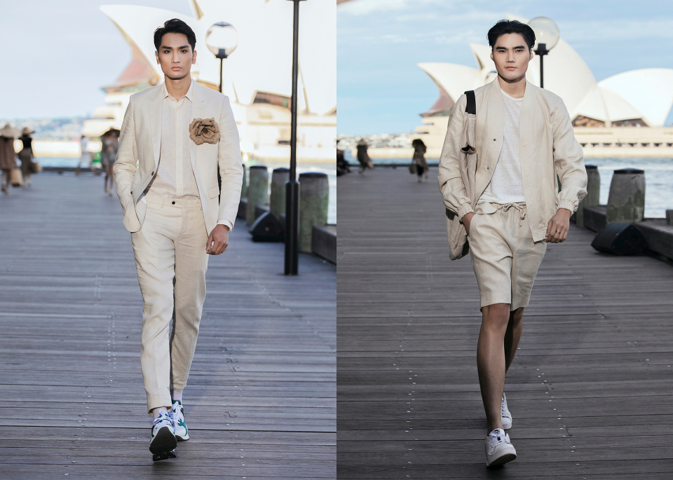 NTK Đỗ Mạnh Cường đã sử dụng một con đường nằm cạnh khách sạn Park Hyatt để làm sàn diễn ngoài trời với bối cảnh là Nhà hát Sydney Opera nổi tiếng. Nắng chiều vàng óng cùng với bầu trời thu có làn mây trắng đã tạo nên một không gian trình diễn hoàn hảo.