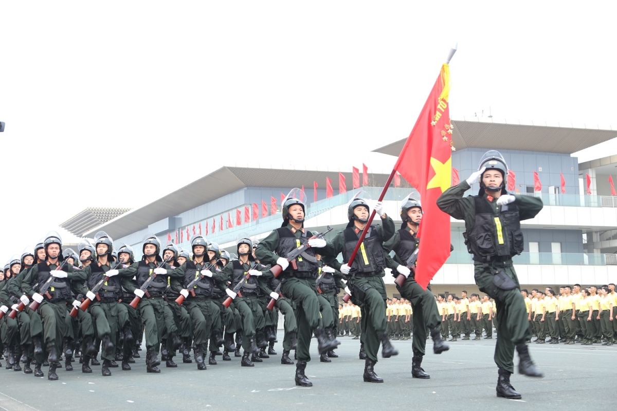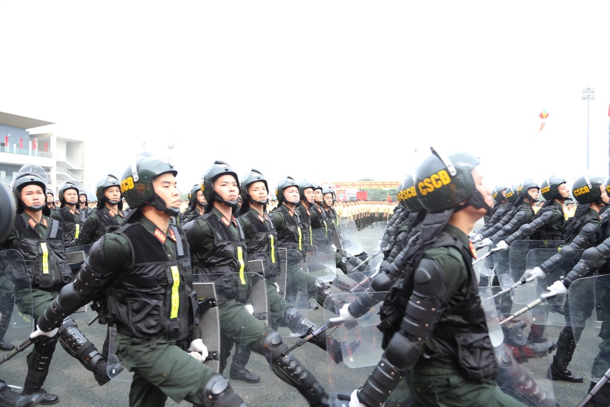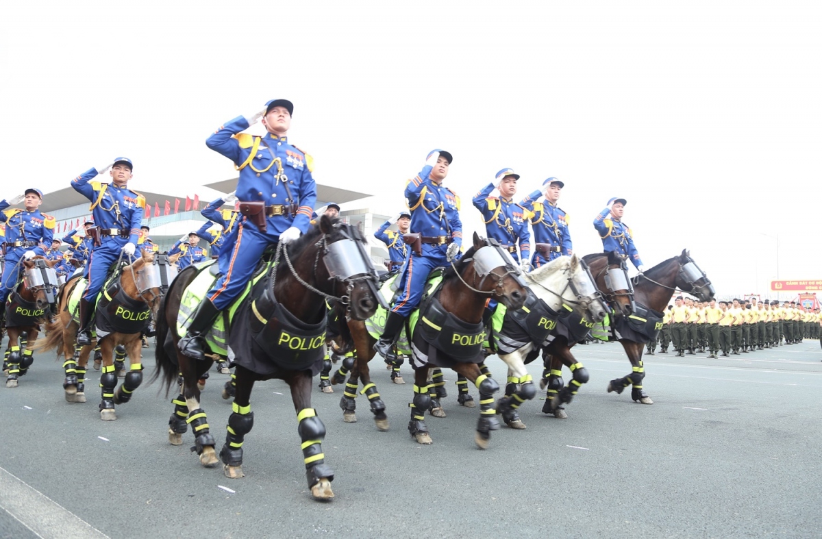 Lực lượng diễu binh, diễu hành trong Lễ kỷ niệm trọng thể hôm nay với khí thế hào hùng, thể hiện niềm vinh dự, tự hào, lớn mạnh của lực lượng Cảnh sát cơ động.