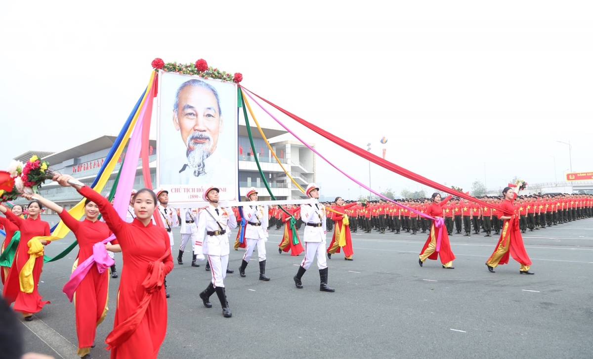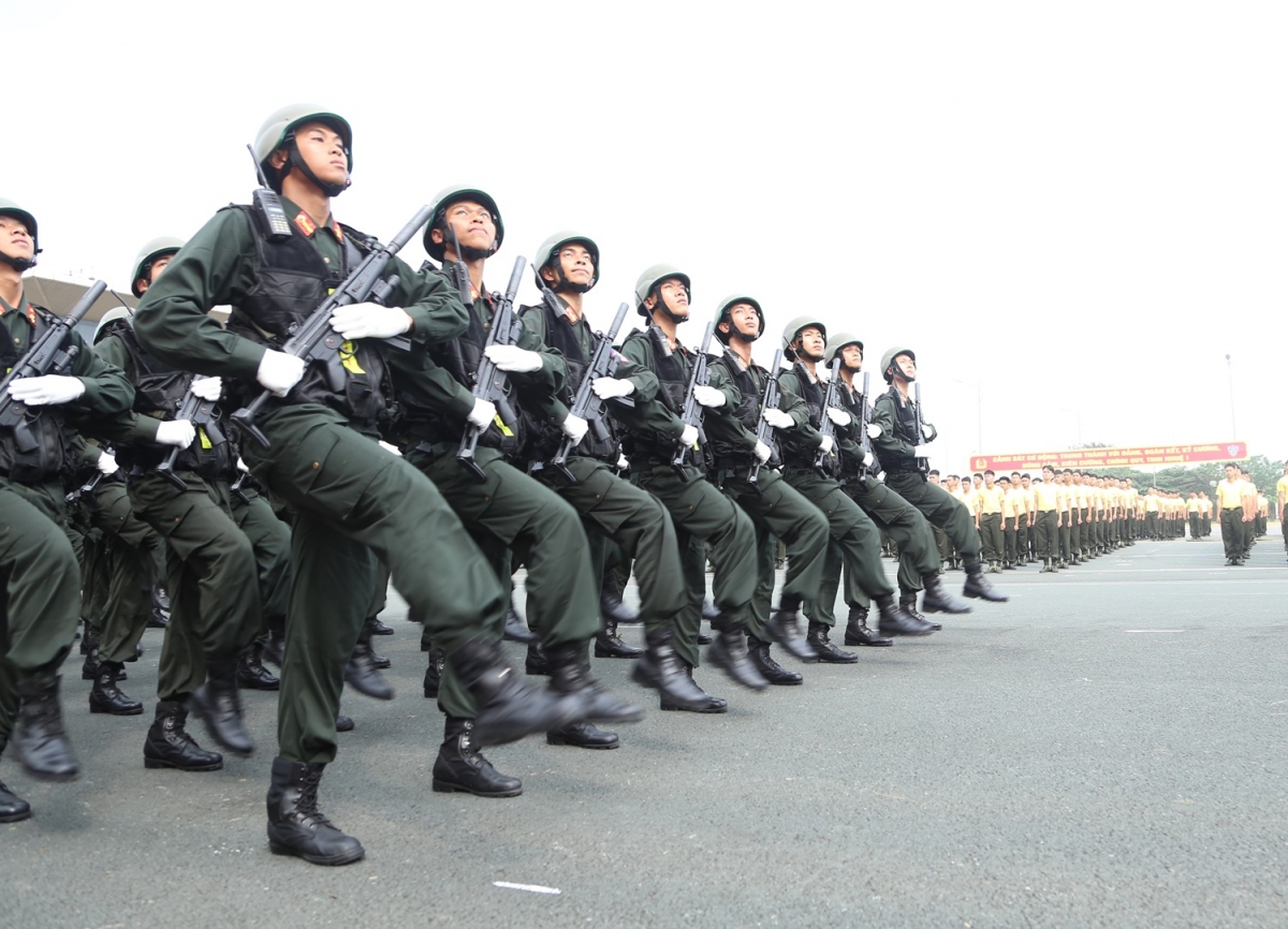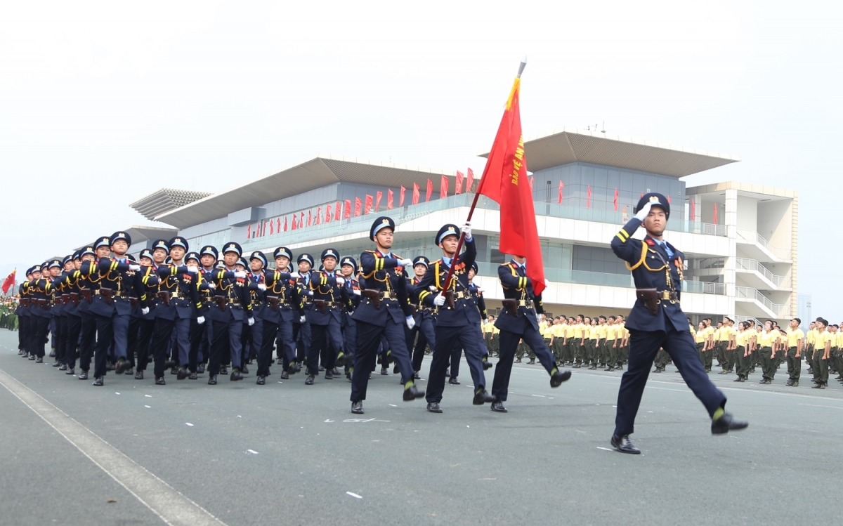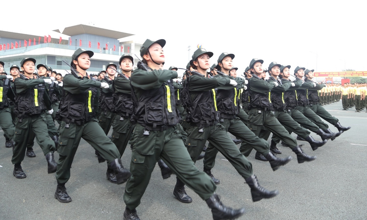 Lực lượng diễu binh, diễu hành trong Lễ kỷ niệm trọng thể hôm nay với khí thế hào hùng, thể hiện niềm vinh dự, tự hào, lớn mạnh của lực lượng Cảnh sát cơ động.
