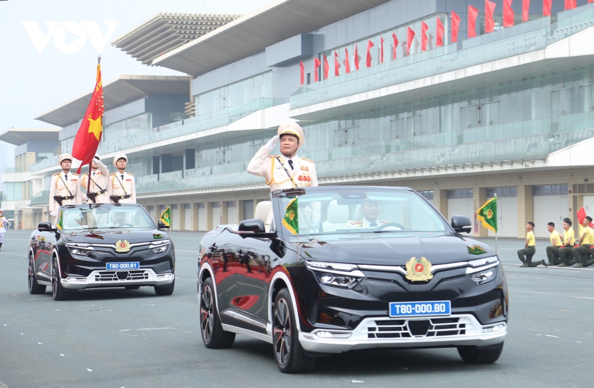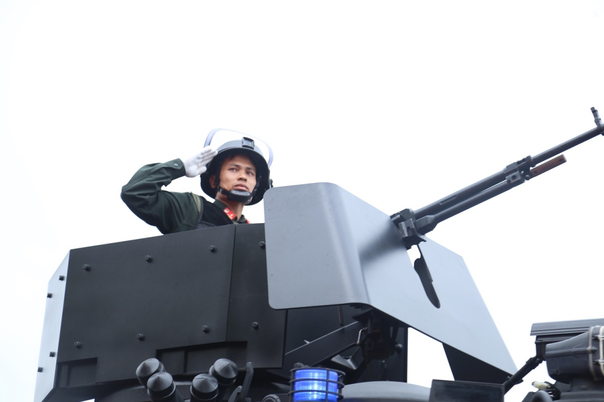 Thiếu tướng Lê Văn Hà, Phó Tư lệnh Bộ Tư lệnh Cảnh sát cơ động trên xe chỉ huy mở màn duyệt đội ngũ.