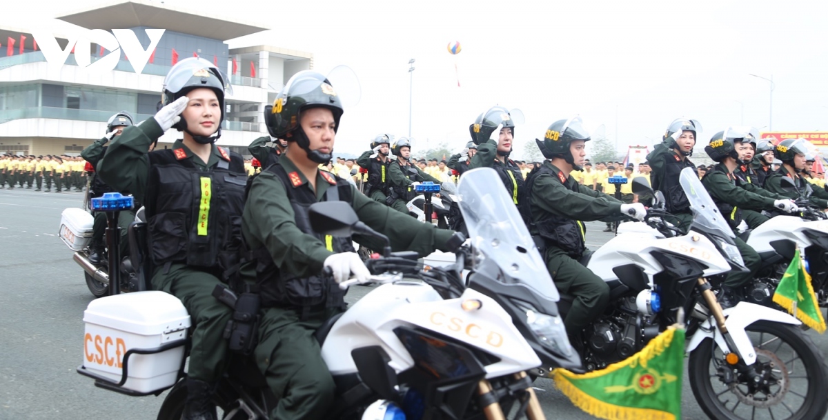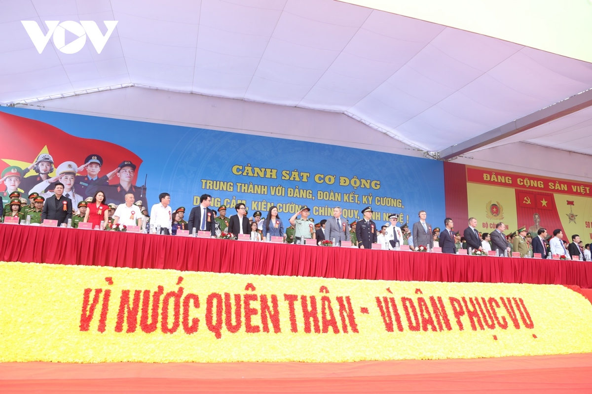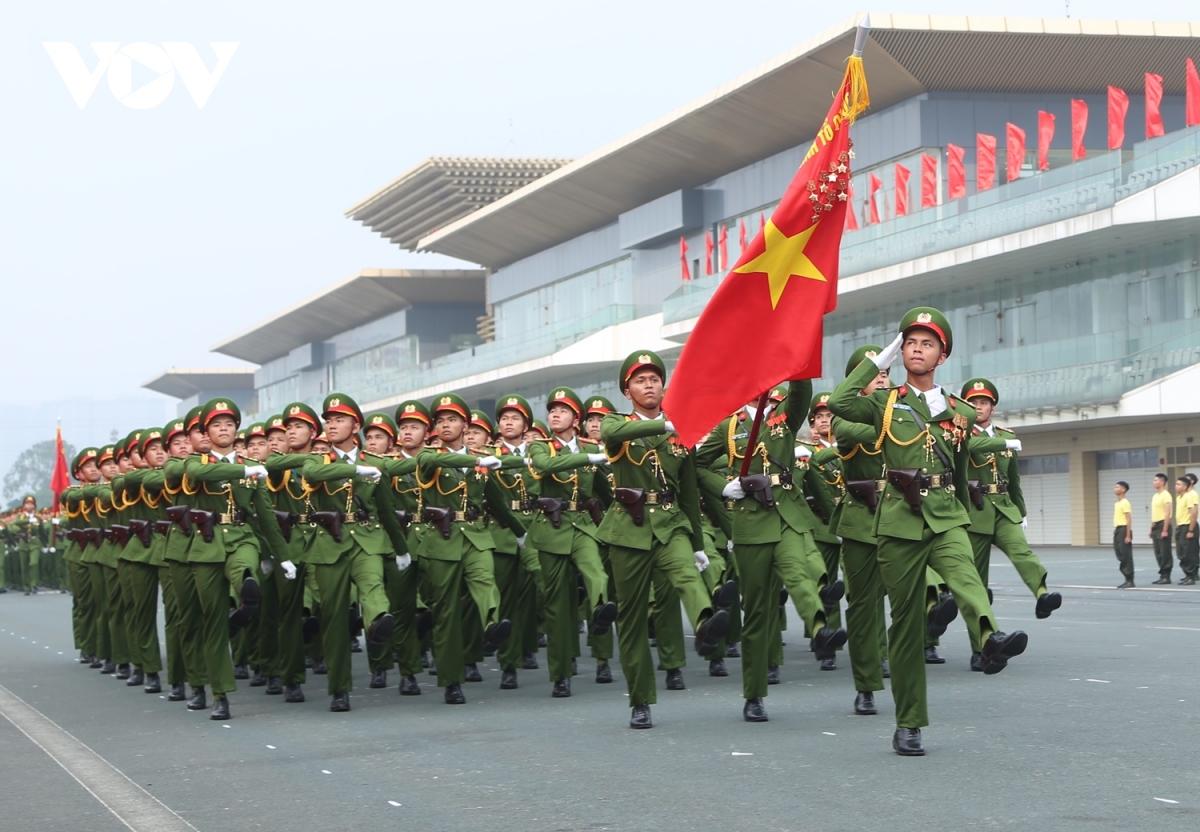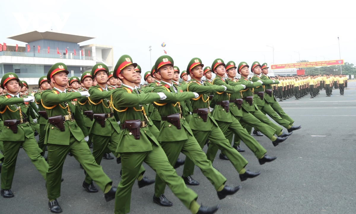 (VOV5) -Lực lượng diễu binh, diễu hành trong Lễ kỷ niệm trọng thể hôm nay với khí thế hào hùng, thể hiện niềm vinh dự, tự hào, lớn mạnh của lực lượng Cảnh sát cơ động.