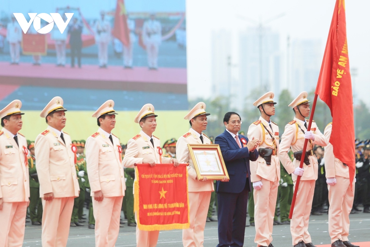 Thủ tướng Phạm Minh Chính trao danh hiệu Anh hùng Lực lượng vũ trang nhân dân cho lực lượng Cảnh sát cơ động.