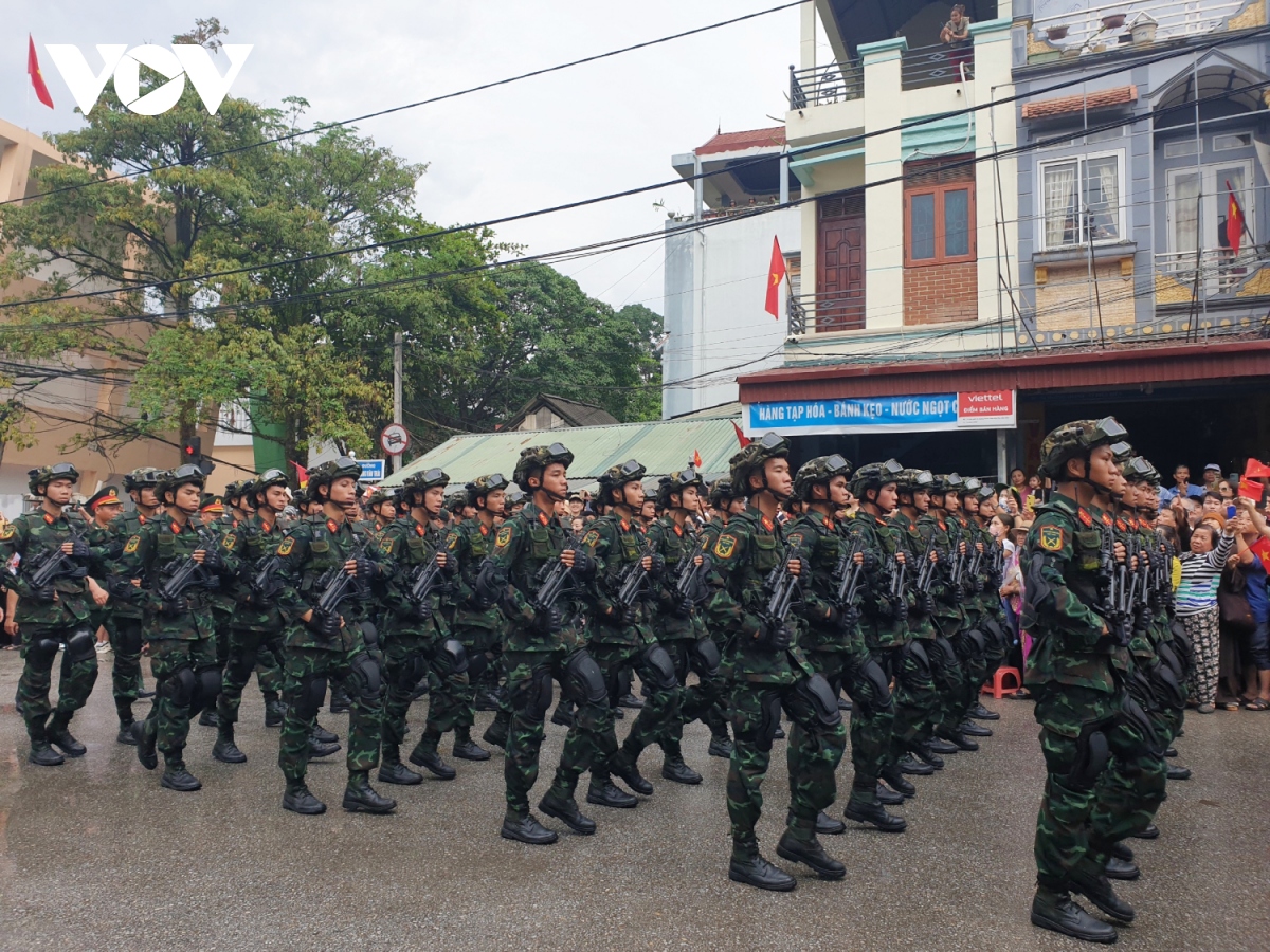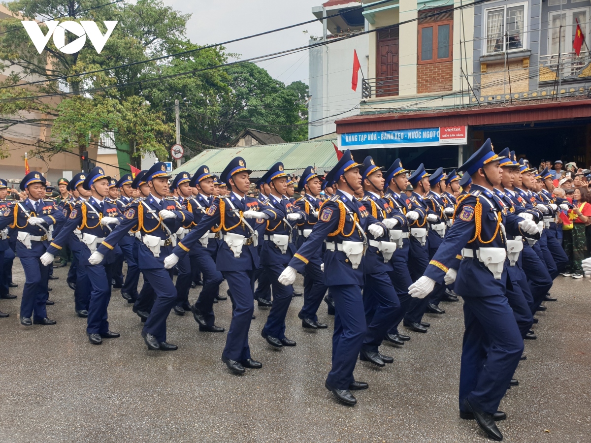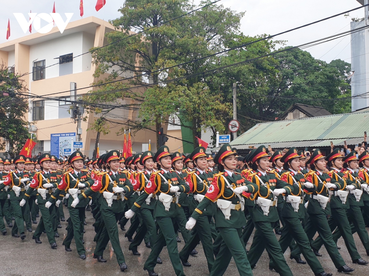 Đội hình diễu binh, diễu hành trong Lễ kỷ niệm trọng thể hôm nay tái hiện khí thế hào hùng của Chiến thắng Điện Biên Phủ lừng lẫy năm châu, chấn động địa cầu 70 năm trước, thể hiện khí phách, sức mạnh vô địch của khối đại đoàn kết toàn dân tộc, truyền thống yêu nước, ý chí tự lực, tự cường, sự lớn mạnh và trưởng thành của lực lượng vũ trang cách mạng. |