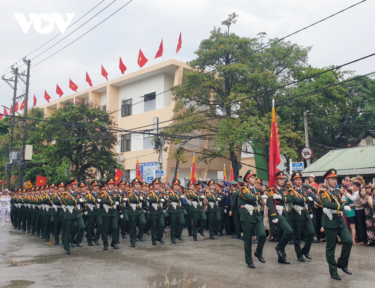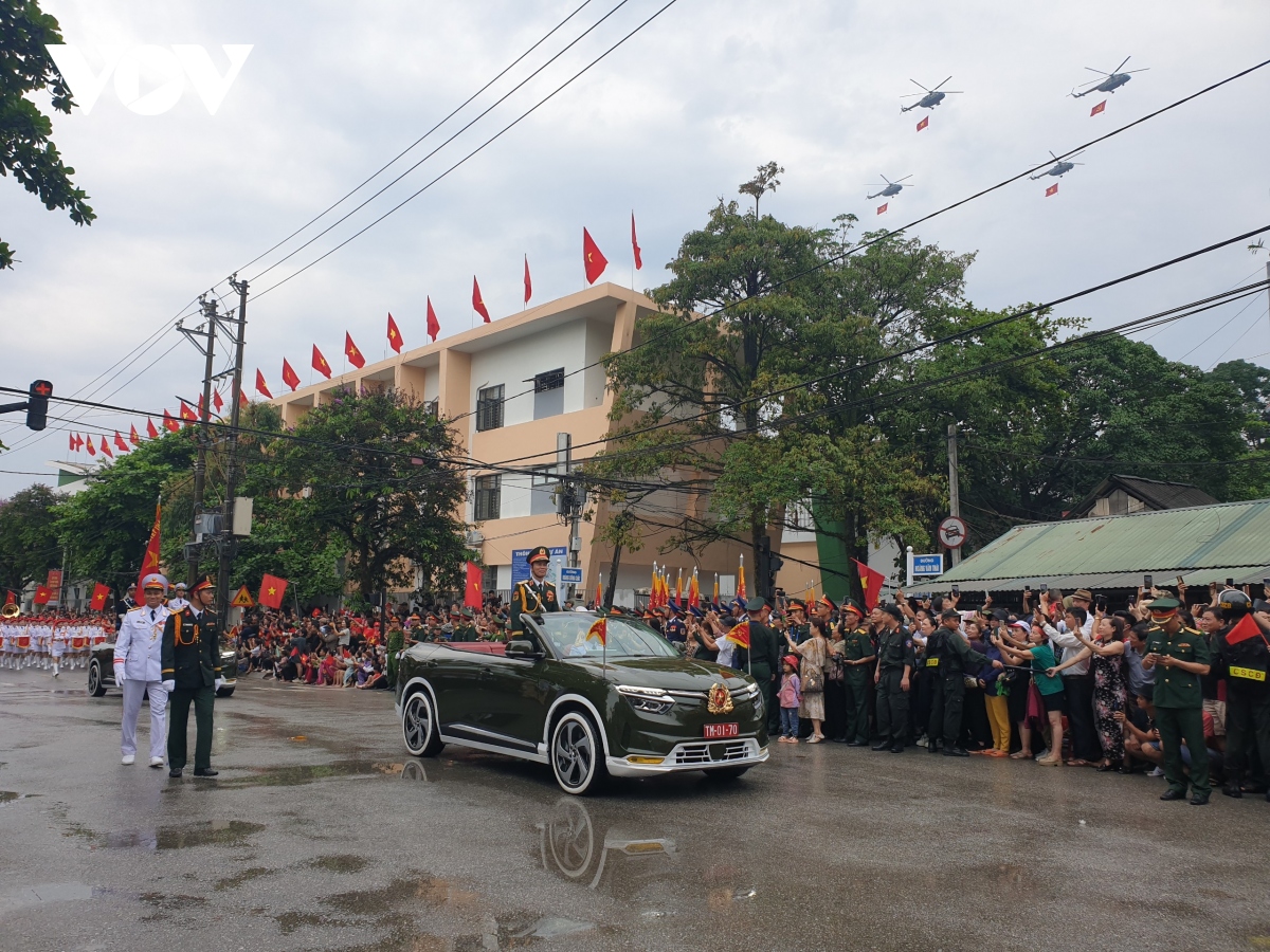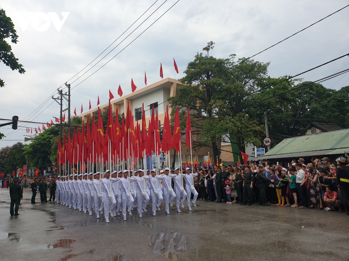 Đội hình diễu binh, diễu hành trong Lễ kỷ niệm trọng thể hôm nay tái hiện khí thế hào hùng của Chiến thắng Điện Biên Phủ lừng lẫy năm châu, chấn động địa cầu 70 năm trước, thể hiện khí phách, sức mạnh vô địch của khối đại đoàn kết toàn dân tộc, truyền thống yêu nước, ý chí tự lực, tự cường, sự lớn mạnh và trưởng thành của lực lượng vũ trang cách mạng. |