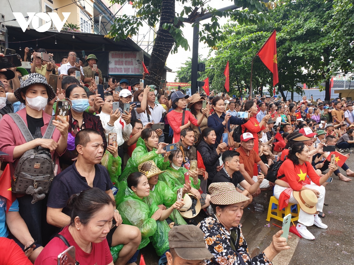 Ngay từ sáng sớm nay, hàng vạn người dân, du khách đã có mặt ở dọc 2 bên đường - nơi các khối diễu binh, diễu hành đi qua. Dù thời tiết không được thuận lợi, có mưa rào vào đầu giờ sáng nhưng mọi người vẫn không quản ngại vẫn đứng chờ suốt mấy tiếng đồng hồ để đón chào các khối diễu binh, diễu hành. |