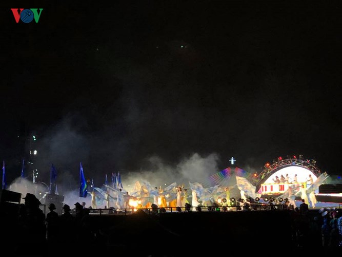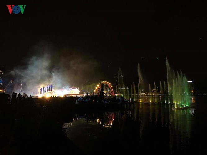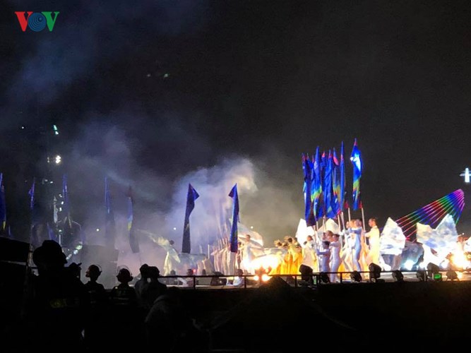 Với chủ đề “Huyền thoại những cây cầu”, đêm khai mạc là nhịp cầu đầu tiên mang tên “Tình yêu” với màn trình diễn của Đà Nẵng- Việt Nam và Ba Lan vào lúc 20h ngày 30/4; tiếp theo là Pháp - Mỹ đêm 26/5; Italy - Hong Kong (Trung Quốc) đêm 2/6; đêm 9/6 là Thụy Điển - Bồ Đào Nha và đêm Chung kết diễn ra vào tối 30/6. Trong ảnh: Trình diễn văn nghệ chào mừng khai mạc lễ hội pháo hoa.