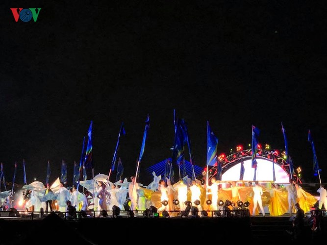 Đội chủ nhà Đà Nẵng- Việt Nam là đội trình diễn trước trong đêm khai mạc. Trong ảnh: Tiết mục văn nghệ trong đêm khai mạc.