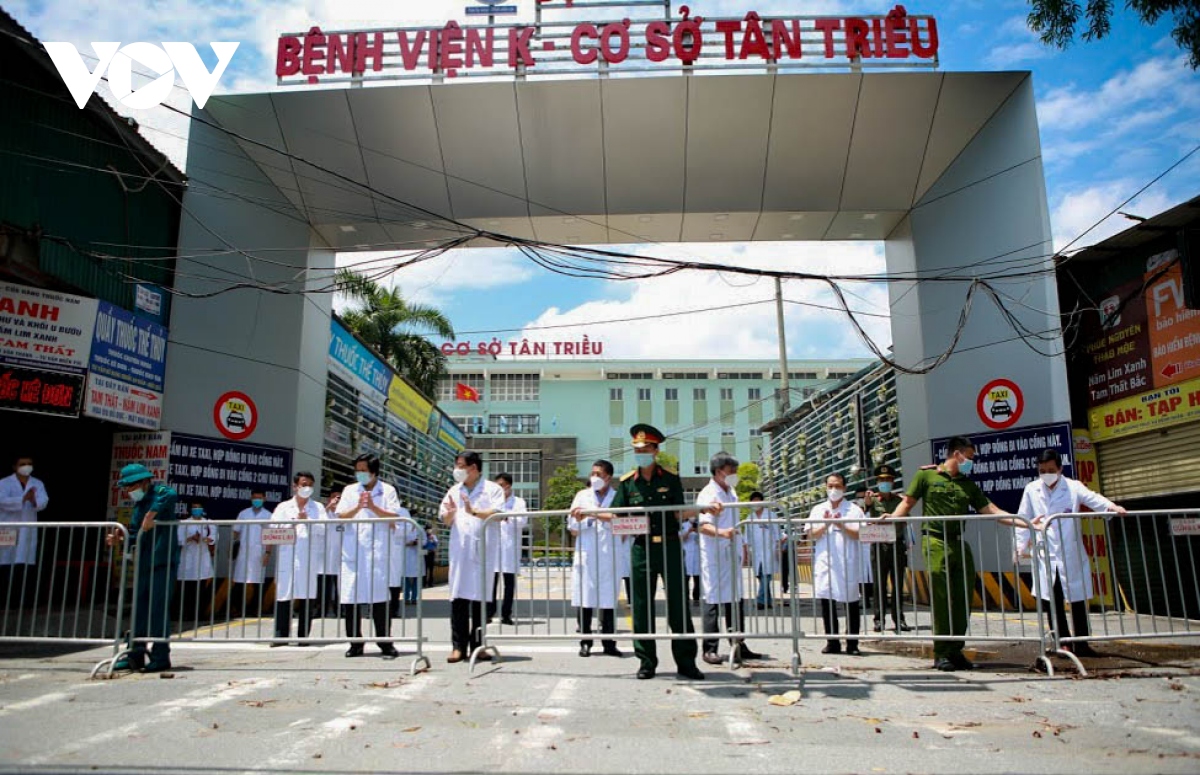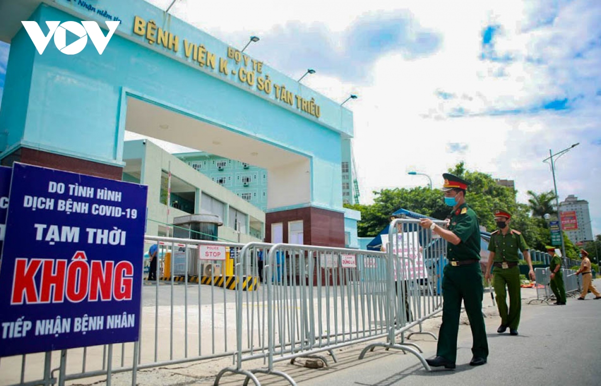 (VOV5) -Sau 37 ngày cách ly y tế, phong toả phòng chống dịch COVID-19, trưa 14/6, Bệnh viện K cơ sở Tân Triều, Hà Nội chính thức dỡ bỏ phong toả và được hoạt động khám chữa bệnh trở lại.