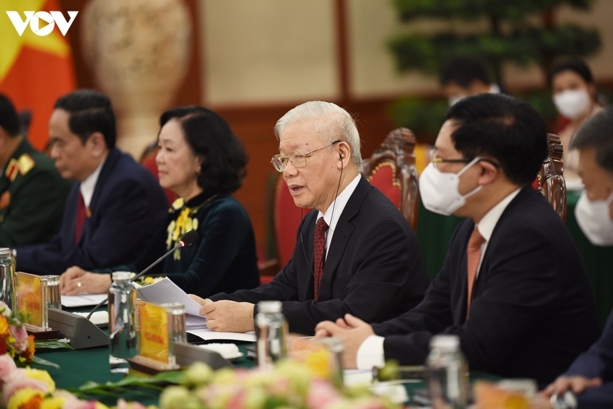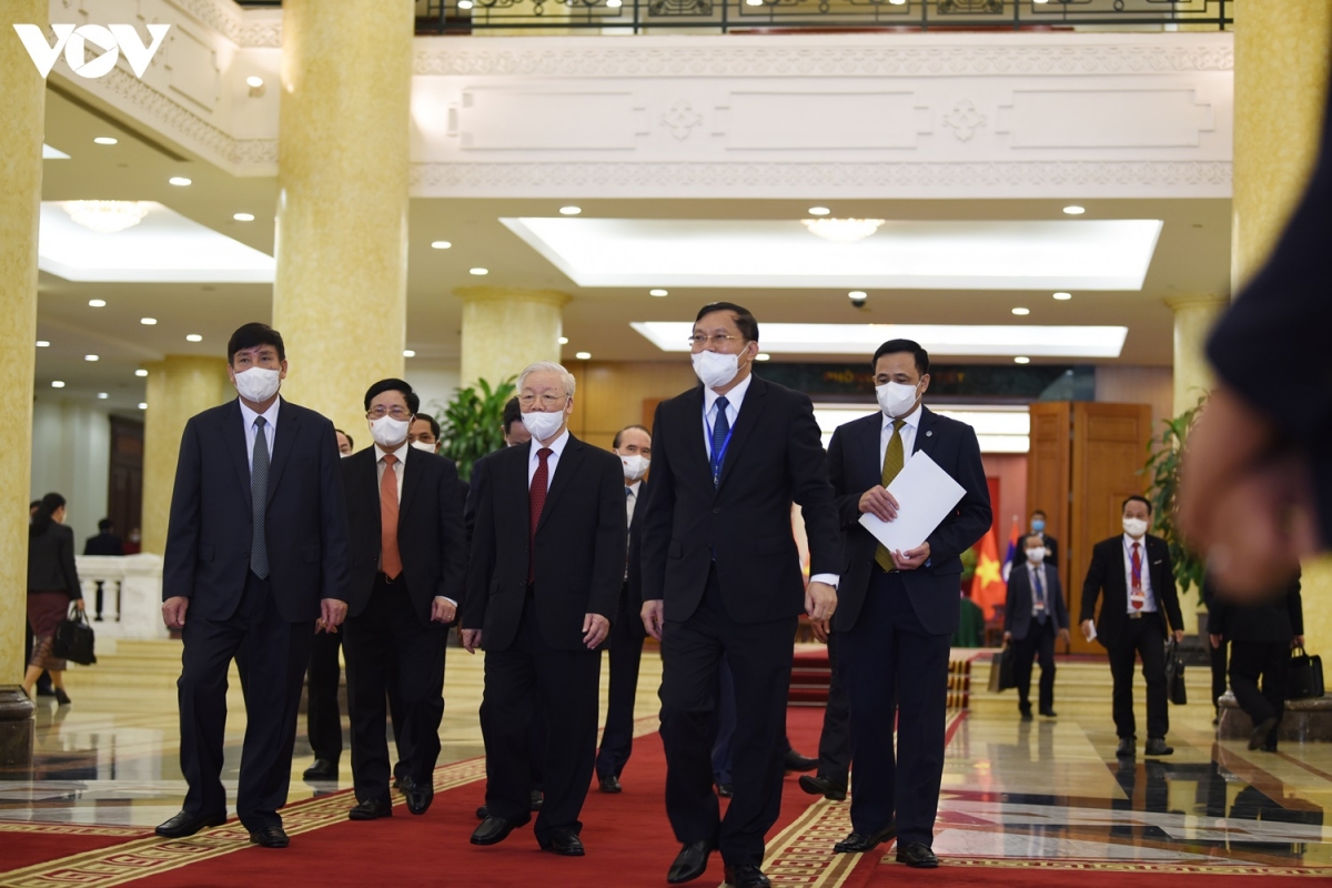 Tổng Bí thư Nguyễn Phú Trọng bày tỏ vui mừng khi Tổng Bí thư, Chủ tịch nước Lào - Thongloun Sisoulith cùng đoàn đại biểu cấp cao sang thăm và làm việc tại Việt Nam.