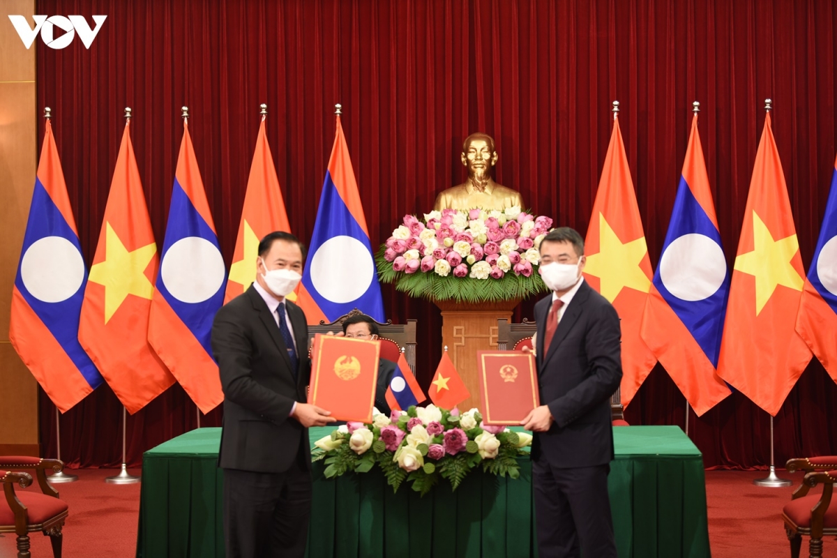 Sau hội đàm, Tổng Bí thư Nguyễn Phú Trọng cùng Tổng Bí thư, Chủ tịch nước Lào - Thongloun Sisoulith đã chứng kiến lễ ký kết các văn kiện hợp tác giữa các Bộ, ban, ngành và tập đoàn lớn của Việt Nam với Lào.