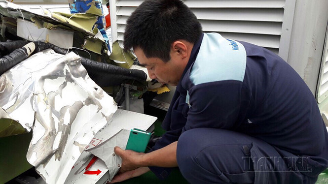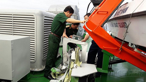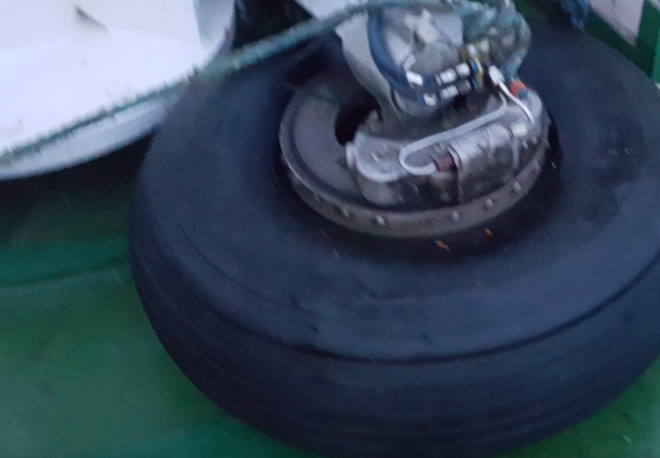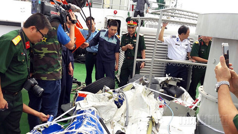 (VOV5) - Sáng 17/6, một số bộ phận của chiếc máy bay CASA-212 gặp nạn gồm: Mảnh khung vỏ, lốp và càng sau đã được chuyển lên tàu CSB 4039.