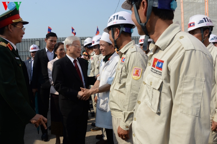 Công trình là quà tặng của Đảng, Nhà nước, Quốc hội, Chính phủ Việt Nam dành cho Đảng, Nhà nước, Quốc hội, Chính phủ và nhân dân Lào, dự kiến sẽ cơ bản hoàn thành và đưa vào sử dụng vào cuối năm 2020. Công trình do Binh đoàn 11, Bộ Quốc phòng thi công. Cùng đi với Tổng Bí thư, Chủ tịch nước có Chủ tịch Quốc hội Lào Pany Yathotou.