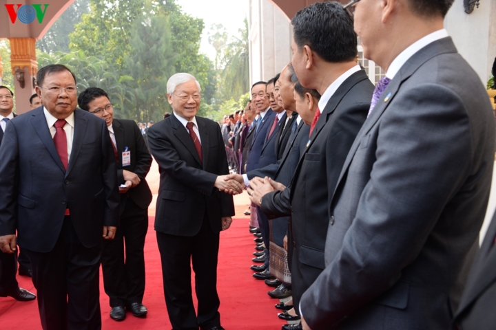 Tổng Bí thư, Chủ tịch nước Nguyễn Phú Trọng bày tỏ vui mừng thăm lại đất nước Lào tươi đẹp, chân thành cảm ơn Tổng Bí thư, Chủ tịch nước và nhân dân Lào đã dành cho Tổng Bí thư, Chủ tịch nước và Đoàn đại biểu cấp cao Việt Nam, sự đón tiếp trọng thị, thắm tình đồng chí, anh em, thể hiện sinh động mối quan hệ gắn bó keo sơn giữa hai Đảng, hai Nhà nước và nhân dân hai nước.