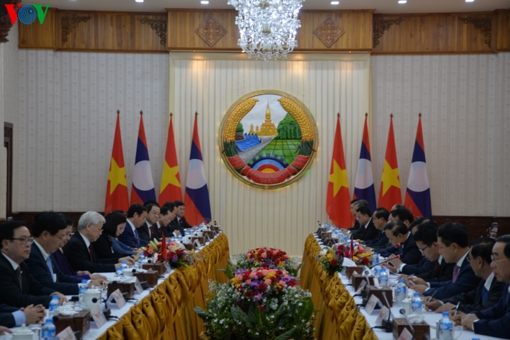 Sau lễ đón, Tổng Bí thư, Chủ tịch nước Nguyễn Phú Trọng đã có cuộc hội đàm với Tổng Bí thư, Chủ tịch nước Lào Bounhang Vorachith