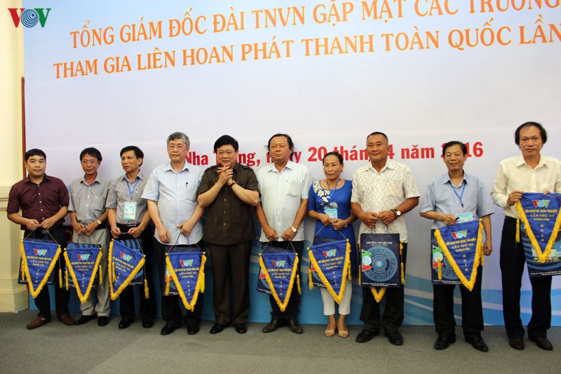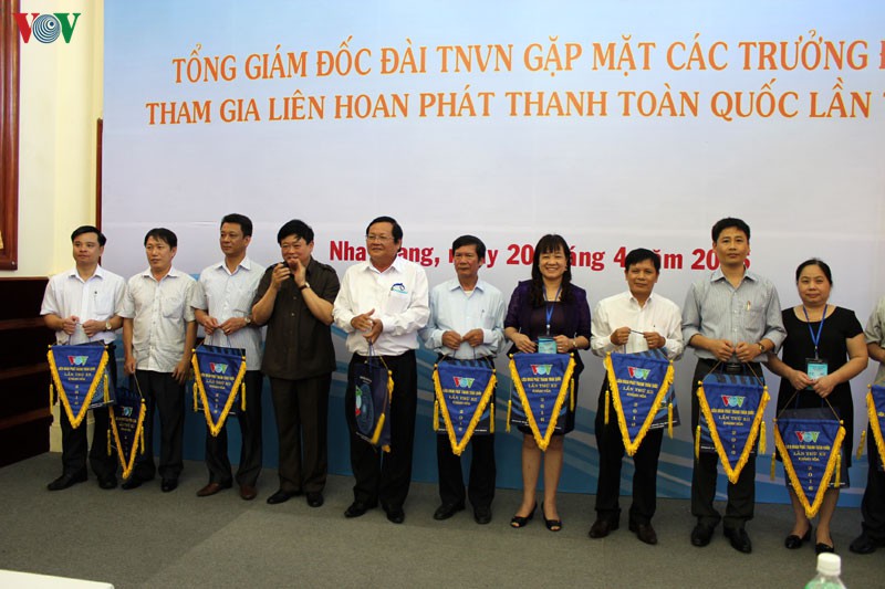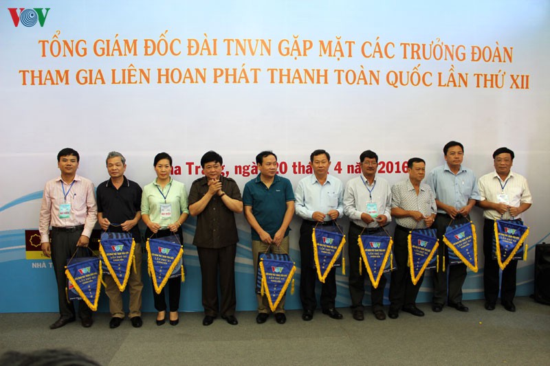 Tham dự cuộc gặp mặt có các Phó Tổng giám đốc Đài TNVN (VOV): ông Vũ Hải và ông Nguyễn Xuân Huy cùng các trưởng đoàn tham dự Liên hoan phát thanh năm nay.