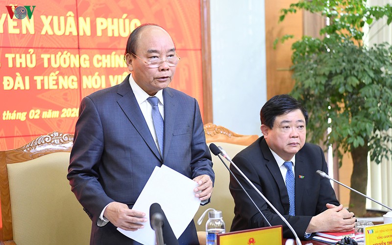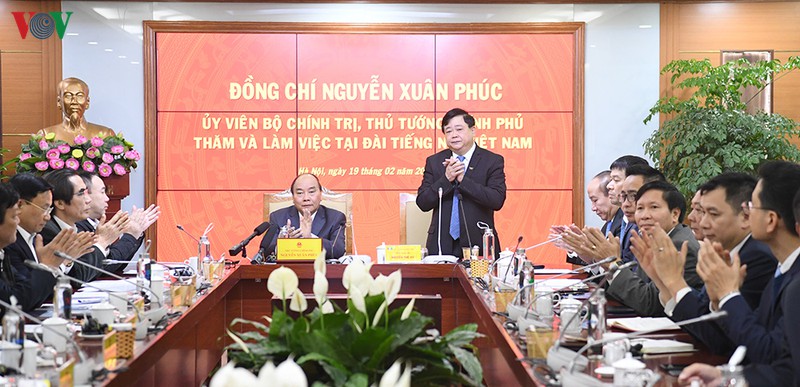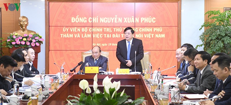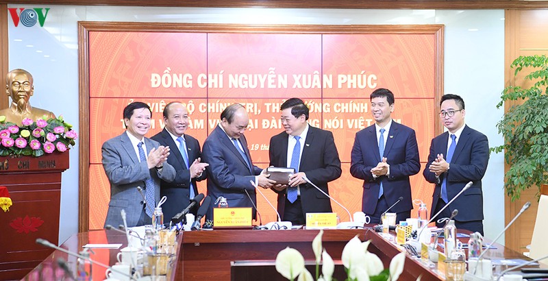 | Thủ tướng Nguyễn Xuân Phúc tặng quà cho Đài Tiếng nói Việt Nam nhân chuyến thăm và làm việc. |