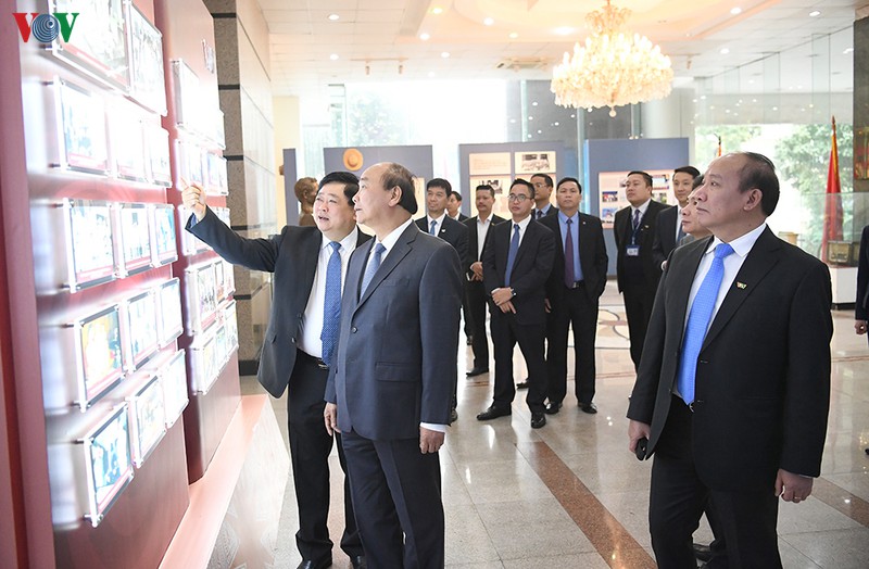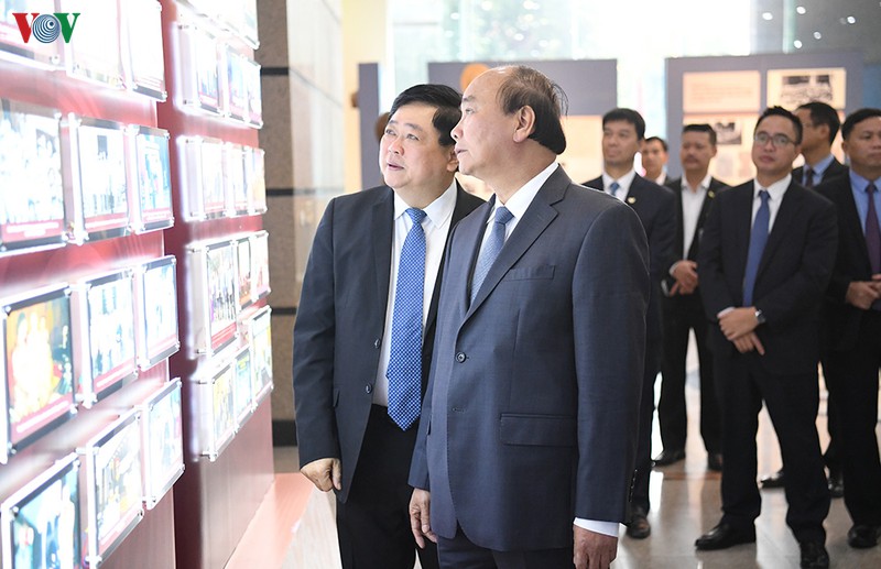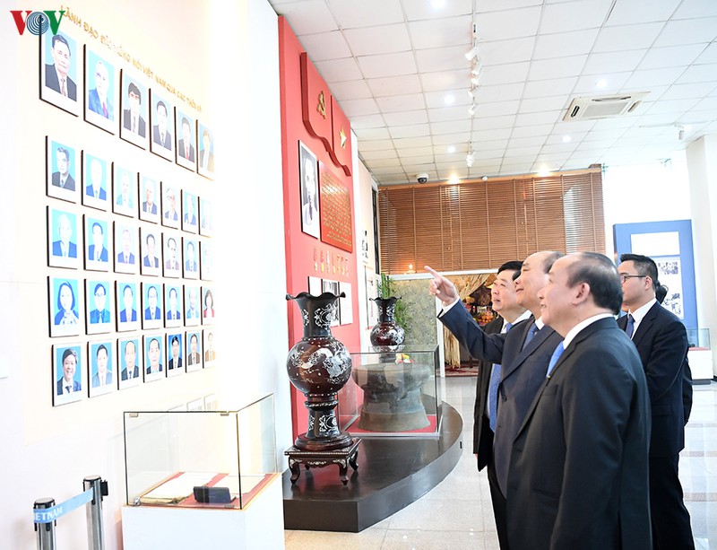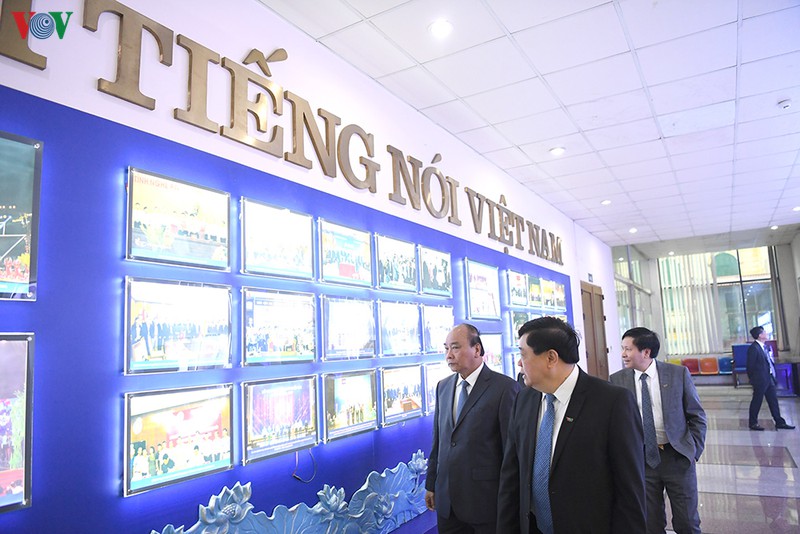Thủ tướng cũng tham quan phòng truyền thống - nơi lưu giữ nhiều hình ảnh, tư liệu và hiện vật quý giá về lịch sử 75 năm của Đài Tiếng nói Việt Nam. |