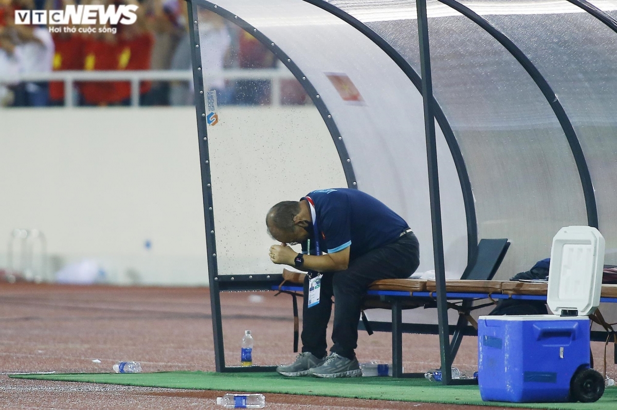 HLV Park Hang Seo và các học trò trải qua 90 phút đầy căng thẳng trên sân Mỹ Đình trong trận chung kết. HLV trưởng của U23 Việt Nam phải ra sát đường biên chỉ đạo, thúc giục các học trò nhiều hơn so với các trận khác.