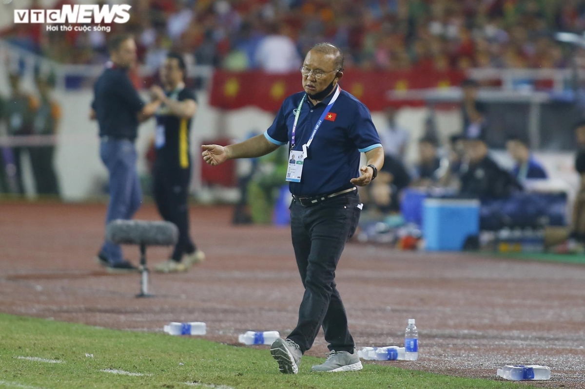 Bên ngoài sân, HLV Park Hang Seo vẫn đứng ngồi không yên.