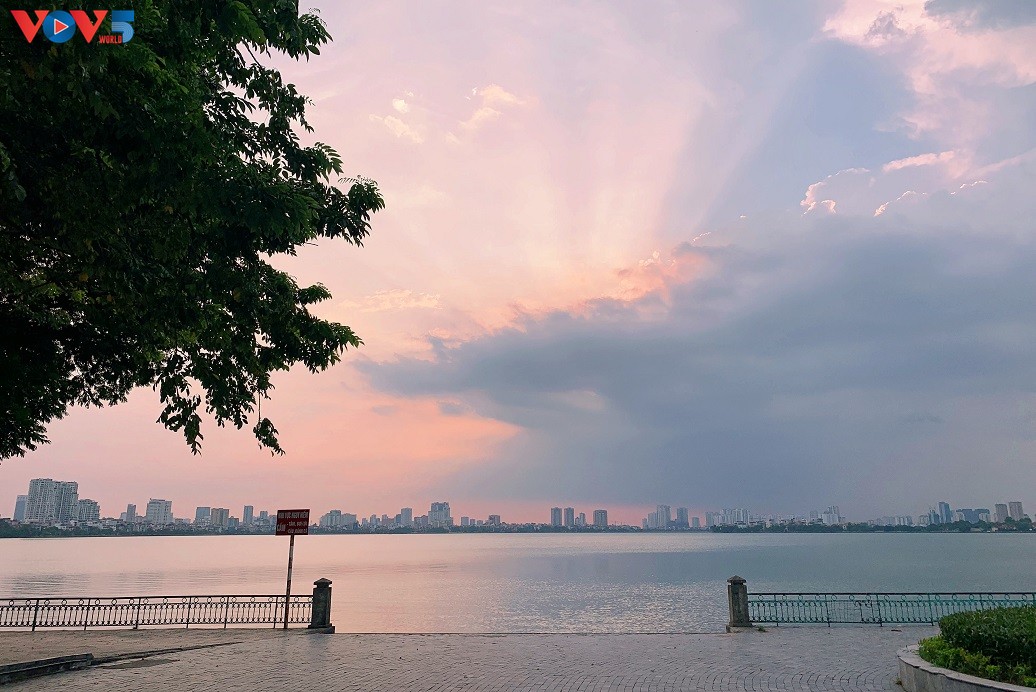 Bất kể mùa dịch hay không thì hoàng hôn ở Hồ Tây vẫn làm nao lòng người. |