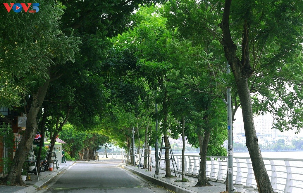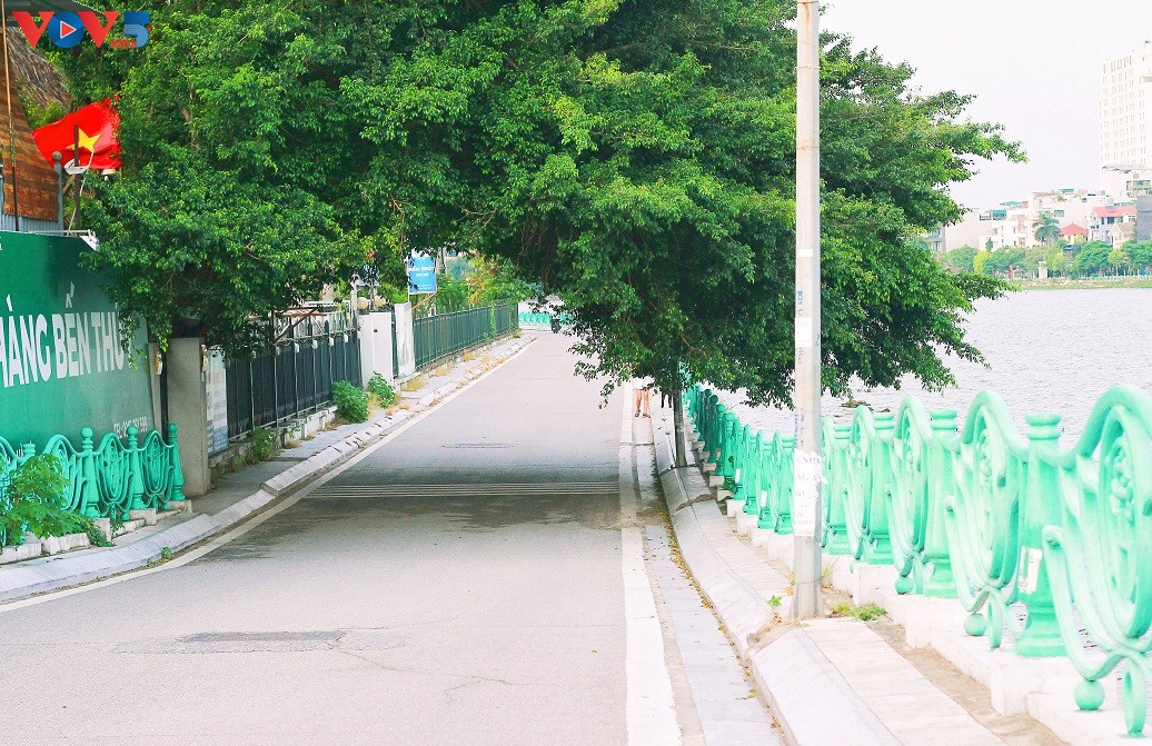 Nếu như trước kia, nhiều người ra đường ven hồ hóng mát thì giờ đây, con đường này vắng bóng người. |