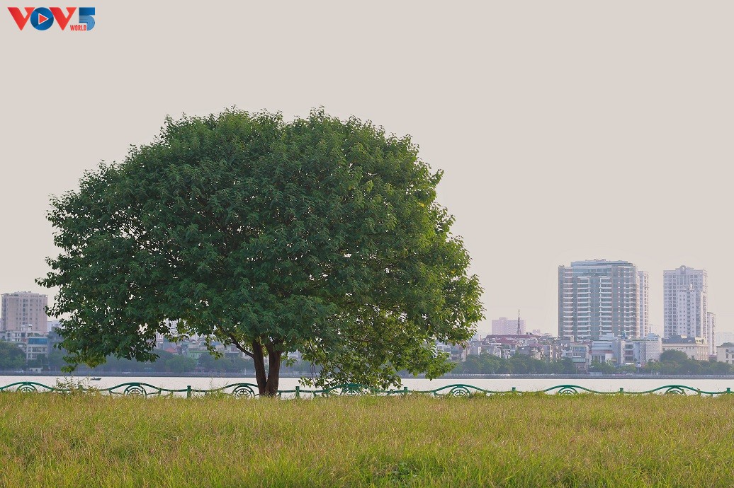 Cây cô đơn Hồ Tây lẻ loi trong nắng chiều. |