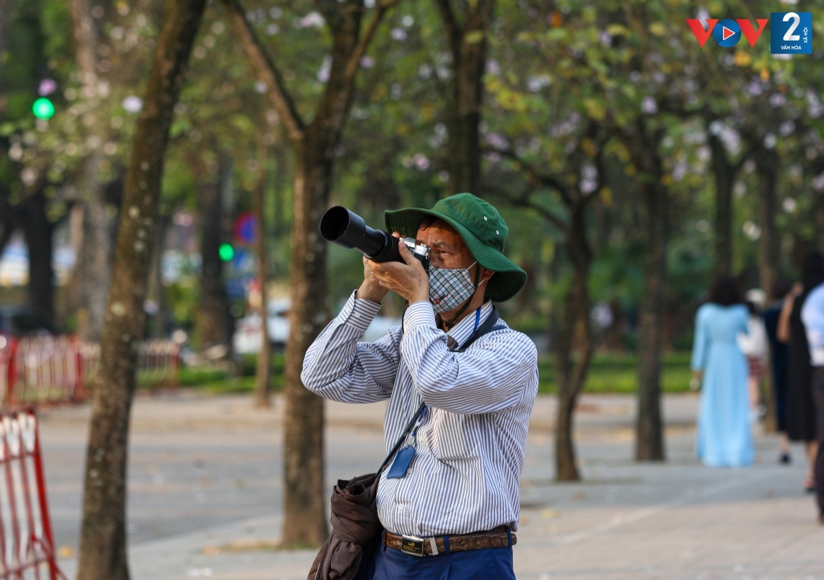 Màu tím phơn phớt dịu dàng càng khiến những con đường của Thủ đô trở nên thơ mộng hơn. |
