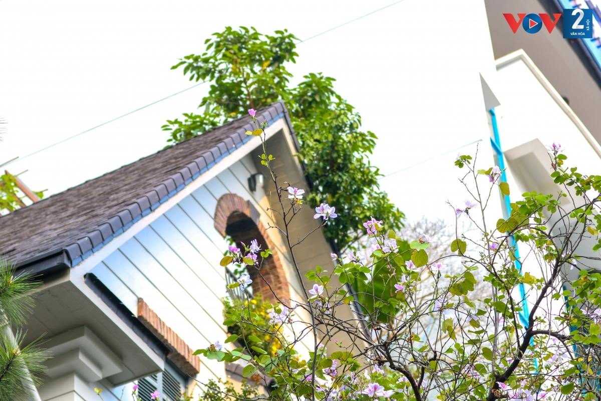 Hoa ban tạo nét thơ mộng trước cửa một ngôi nhà trên phố Nguyễn Du. |