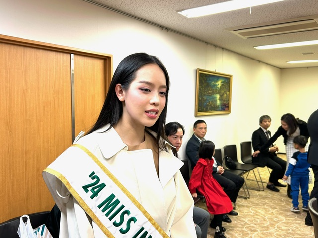 | Hoa hậu Quốc tế Thanh Thủy thân thiện và rạng rỡ khi trả lời báo chí trong chương trình gặp mặt và giao lưu tại Đại sứ quán Việt Nam tại Nhật Bản. Thanh Thủy khẳng định, với tư cách là Hoa hậu Quốc tế 2024, cô sẽ tiếp tục nỗ lực và coi đó là mục tiêu quan trọng nhất để tiếp tục phấn đấu và cống hiến, xứng đáng với niềm tin yêu của tất cả công chúng ở trong nước, cũng như đáp lại sự ủng hộ và tình cảm của người hâm mộ Việt Nam. |