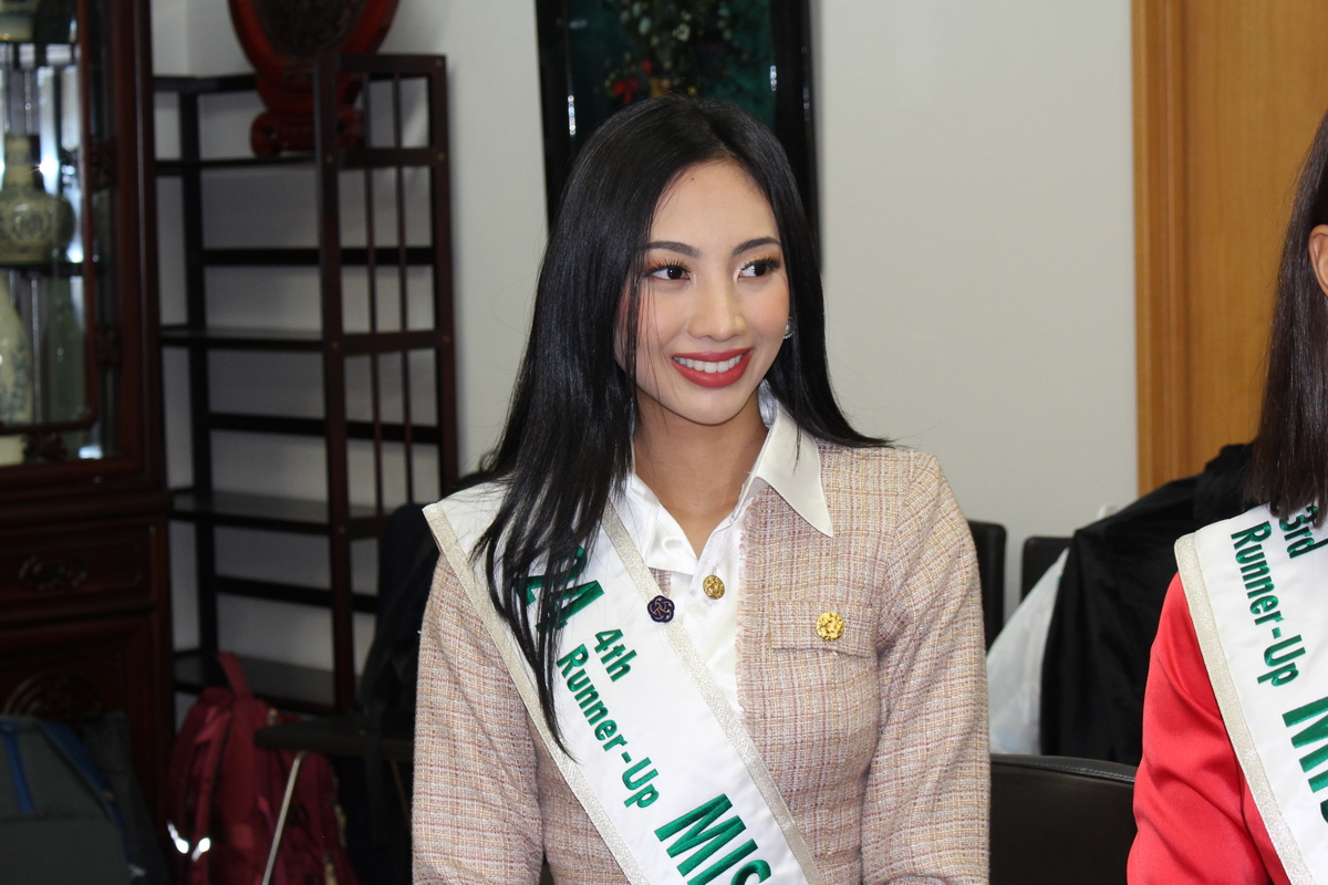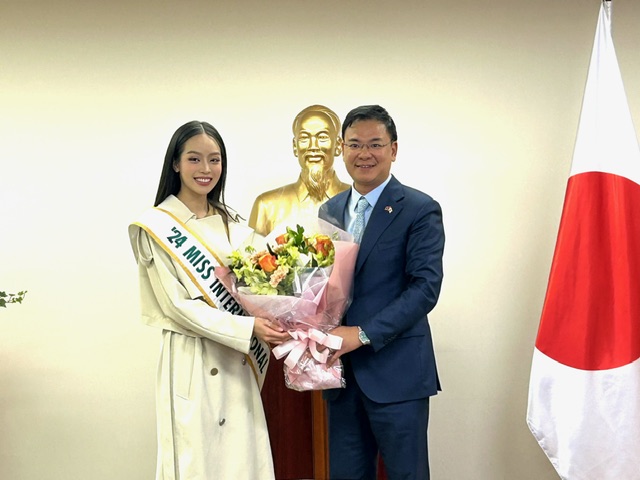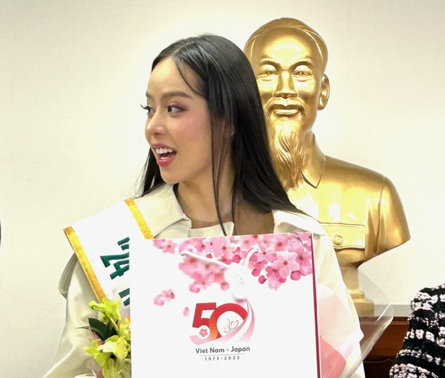 | Hoa hậu Quốc tế Thanh Thủy rạng rỡ trong chương trình gặp mặt và giao lưu tại Đại sứ quán Việt Nam tại Nhật Bản |
