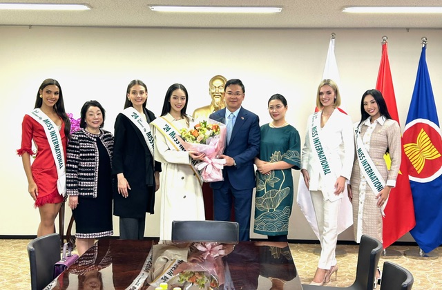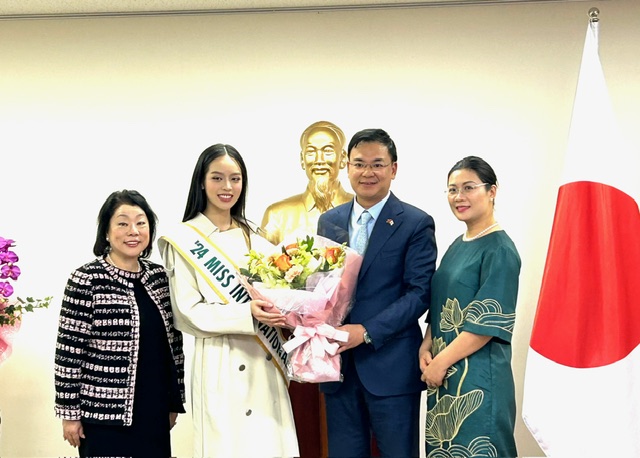 Vào chiều nay (15/11, theo giờ địa phương), Đại sứ quán Việt Nam đã tổ chức buổi gặp mặt, chúc mừng và giao lưu với Hoa hậu Huỳnh Thị Thanh Thủy - người đã xuất sắc đăng quang cuộc thi Miss International 2024 (Hoa hậu Quốc tế) hôm 12/11 vừa qua tại Nhật Bản, cùng với sự tham gia của bốn Á hậu trong cuộc thi. Thanh Thủy, cùng với bốn Á hậu của cuộc thi luôn rạng rỡ và thân thiện trong suốt chương trình này.