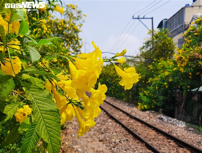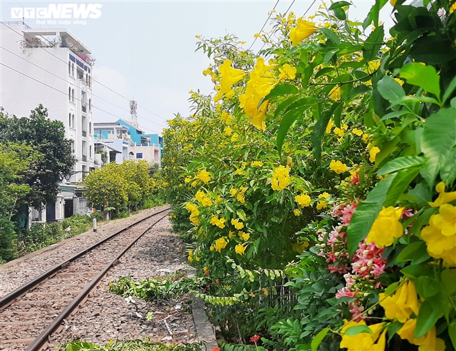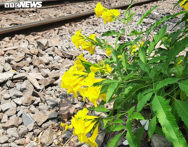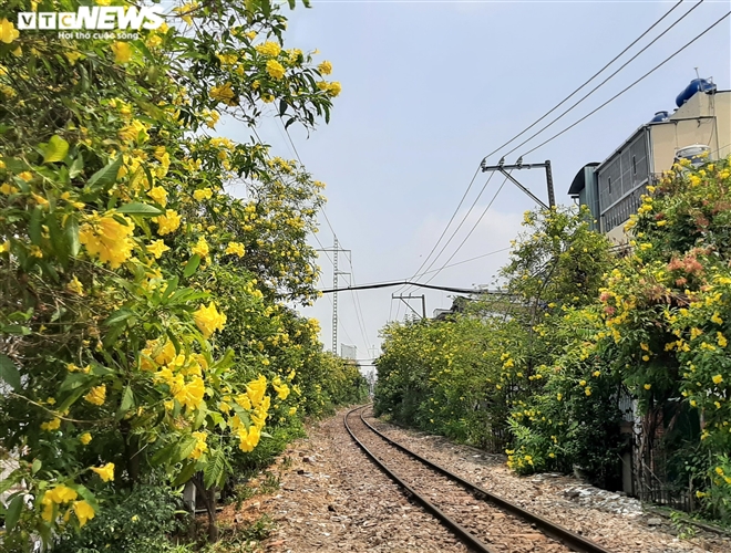 Những hàng rào hoa huỳnh liên bên đường sắt vô tình tạo nên những khung cảnh vàng ruộm cho những con phố