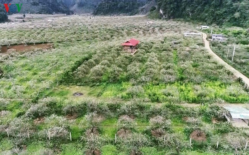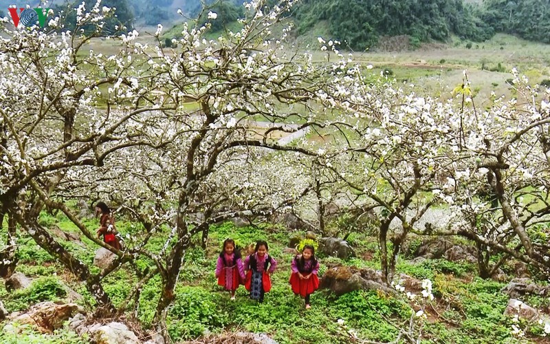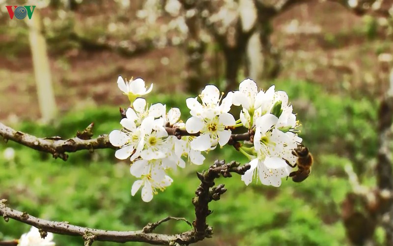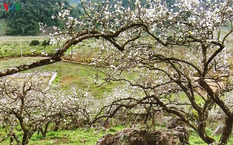 Từ thung lũng này sang thung lũng khác, hoa mận nở thành từng chùm, trải dài như một tấm thảm trắng rộng lớn và xinh đẹp, tạo khung cảnh rất trữ tình và nên thơ.