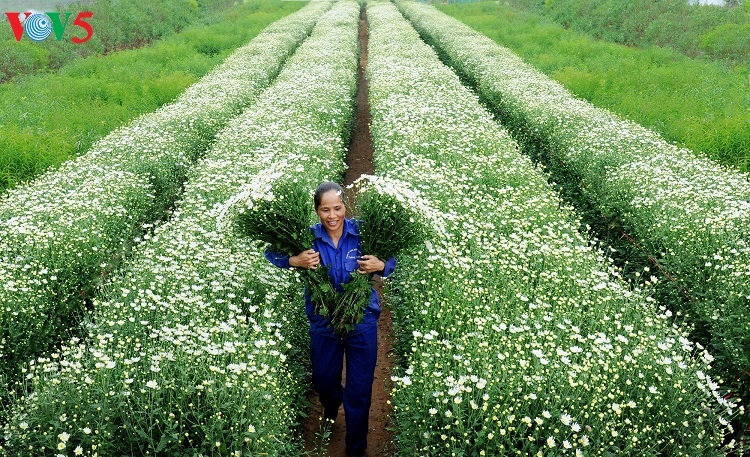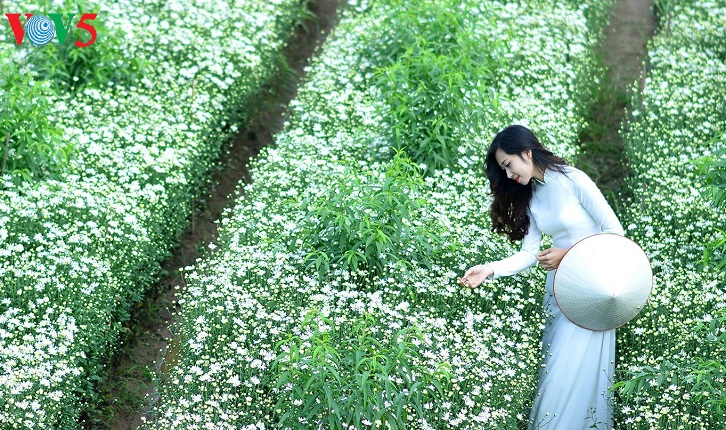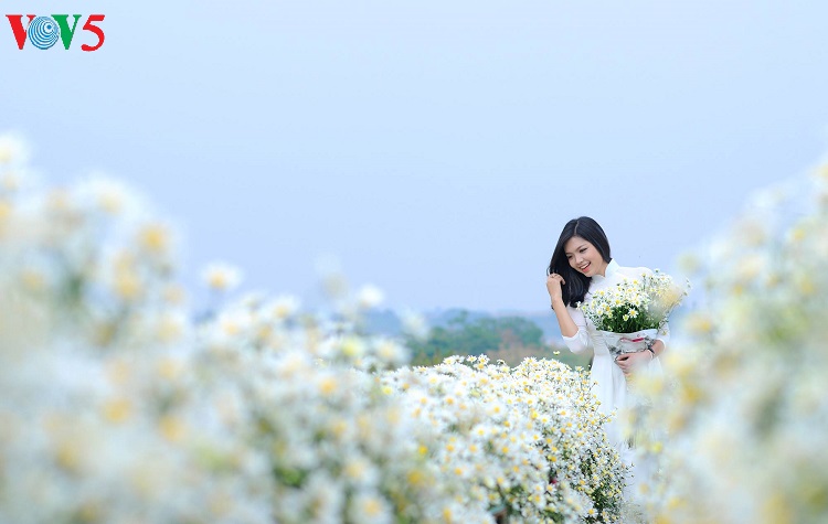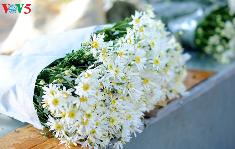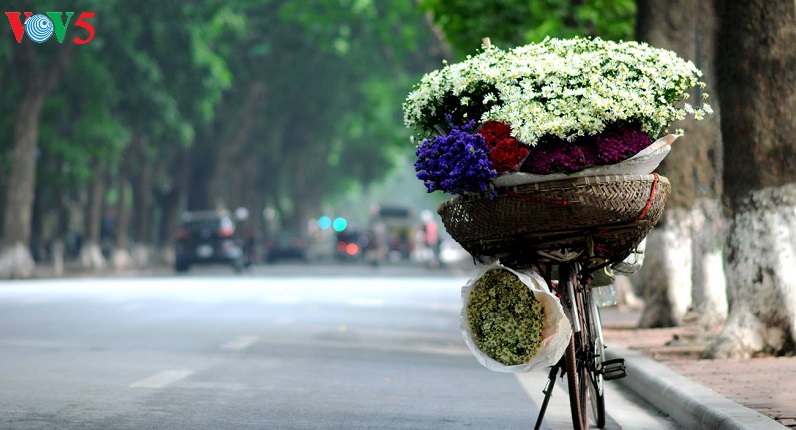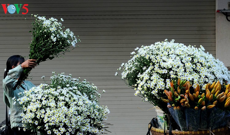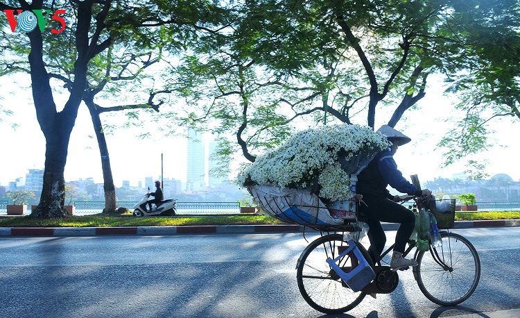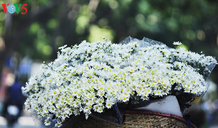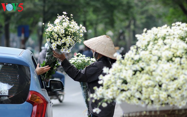 Những con phố vốn nhộn nhịp bỗng trở nên dịu dàng với những bó cúc nhỏ được nâng niu trên tay các thiếu nữ trong tà áo dài truyền thống.