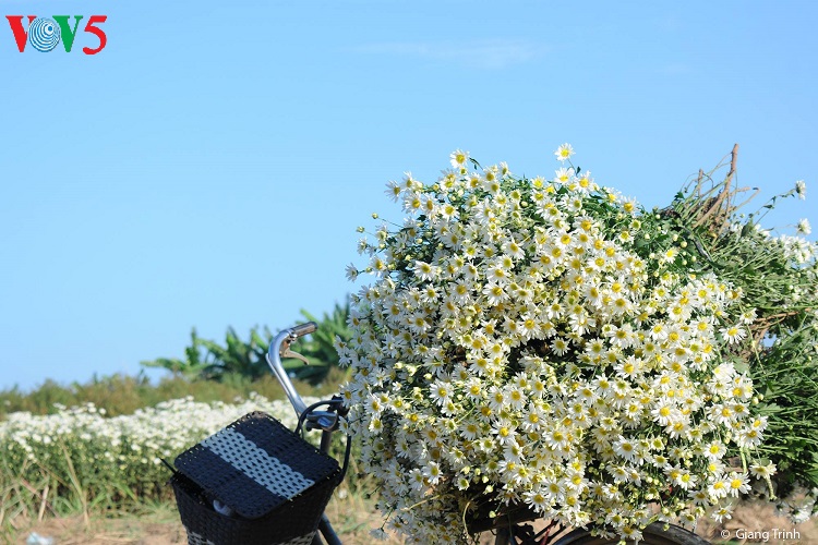 Dọc các tuyến phố ở Hà Nội, đâu đâu cũng gặp những xe chở cúc họa mi trắng ngần như thế này.