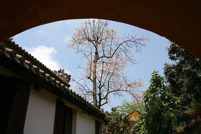 | Sắc hoa tô thắm trên nền trời xanh, làm rực rỡ thêm cho khung cảnh Đại Nội. |