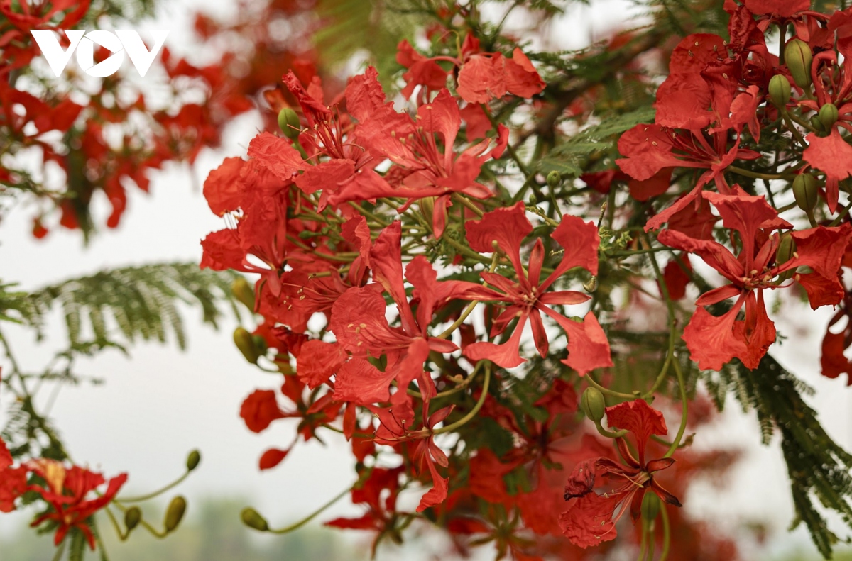 Những chùm phượng vĩ nở đỏ rực rỡ đúng dịp cả nước hướng về lễ kỷ niệm 70 năm Chiến thắng Điện Biên Phủ |