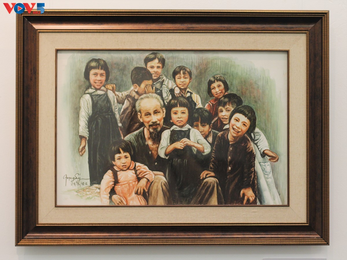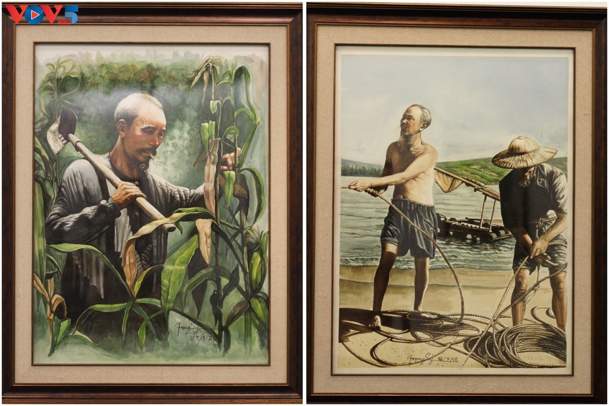 Mỗi bức vẽ là một lát cắt trong cuộc đời hoạt động của Bác Hồ, từ ngày đầu ra đi tìm đường cứu nước, đến những dấu mốc quan trọng của lịch sử cách mạng Việt Nam, luôn gắn liền với hình ảnh vị lãnh tụ kiệt xuất nhưng bình dị, chan hòa tình yêu thương dành cho Nhân dân Việt Nam và thế giới. |