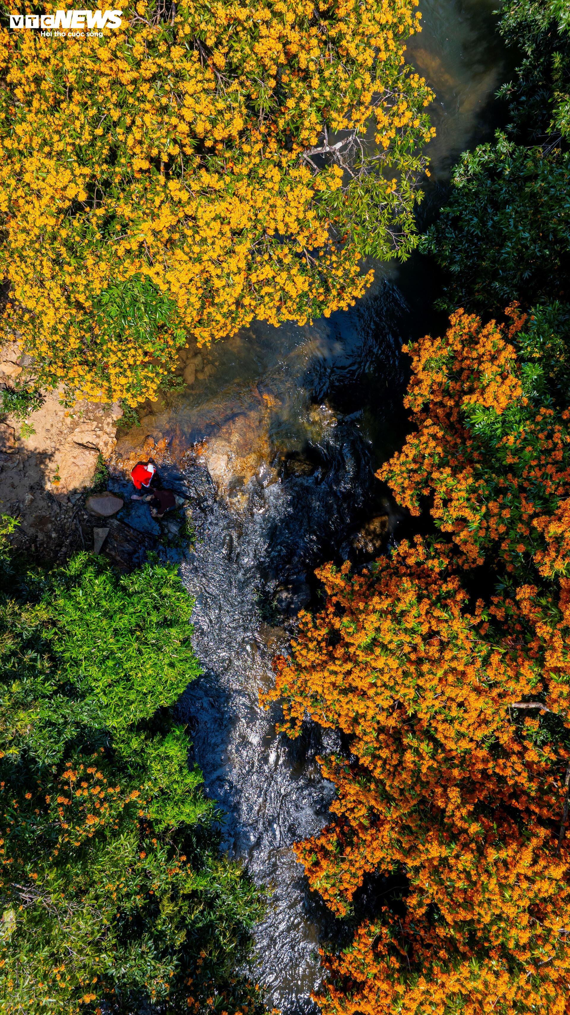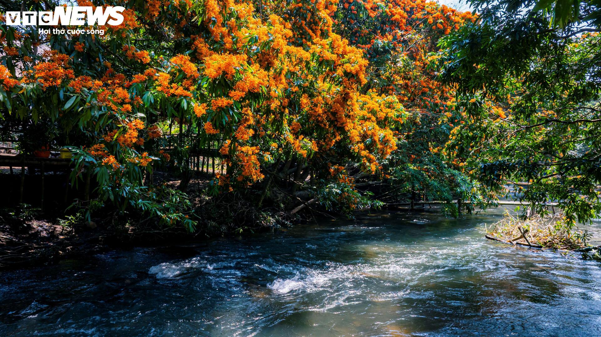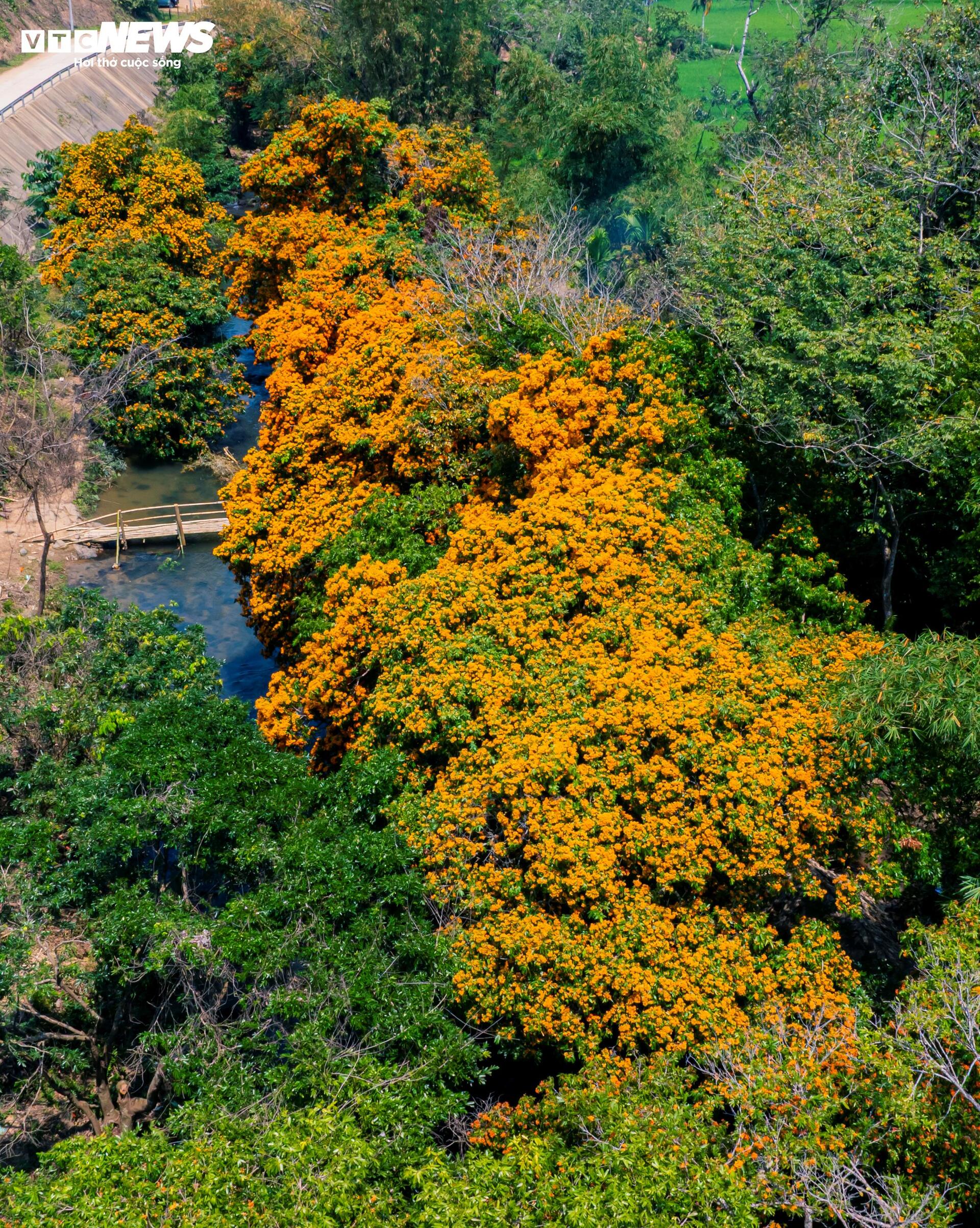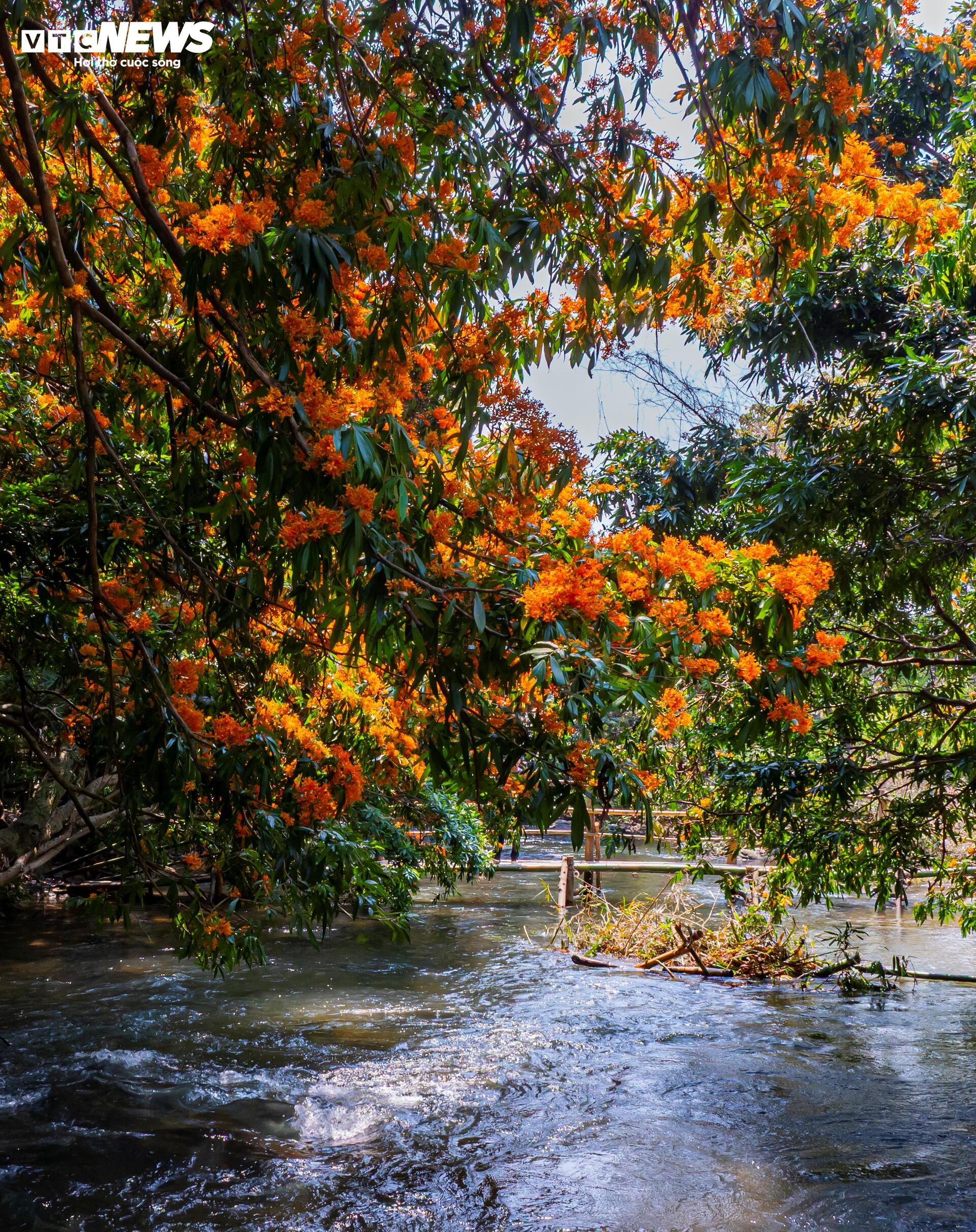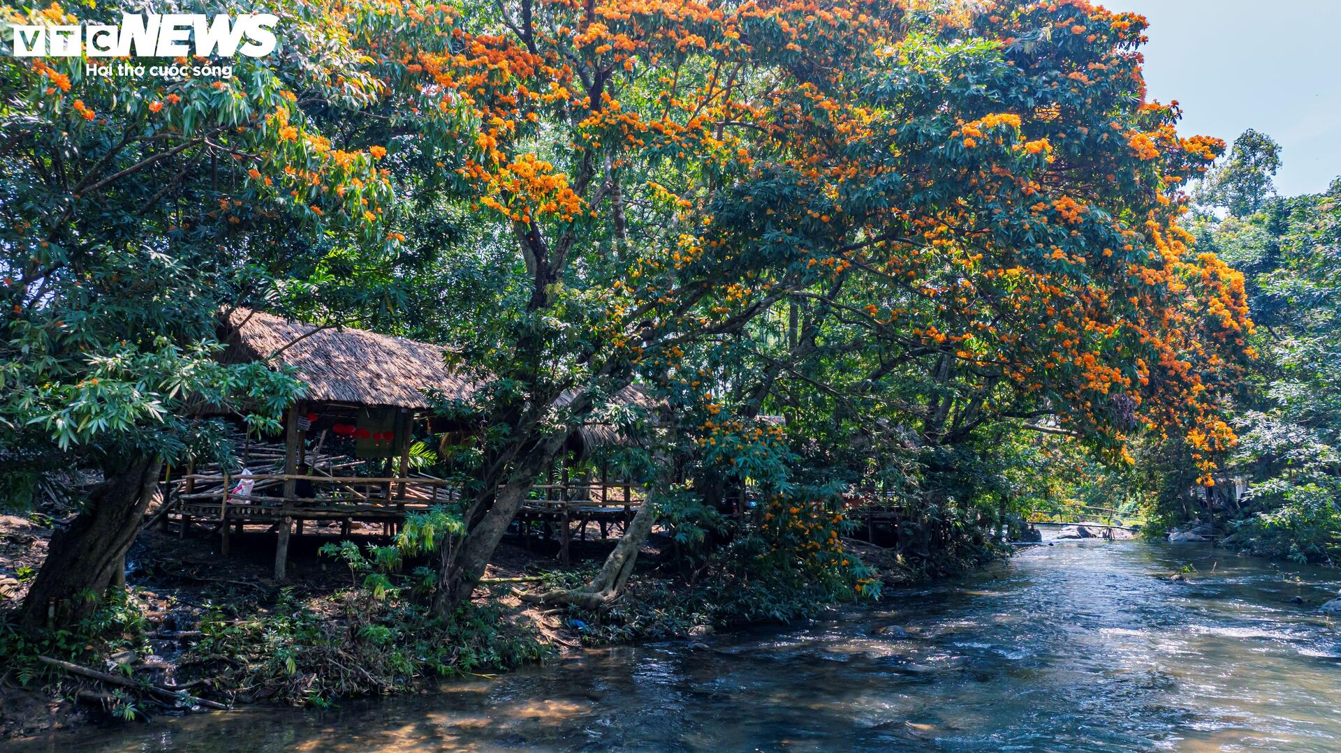 | Không biết có tự bao giờ, bao nhiêu năm tuổi nhưng có đến hàng trăm gốc trang rừng đường kính lớn trải dài hơn 1 km con suối Tà Má bung hoa nở rộ. Mỗi cây nở hoa mang những chùm sắc vàng cam, pha đỏ tạo tán phủ kín khiến khung cảnh đẹp nên thơ. |