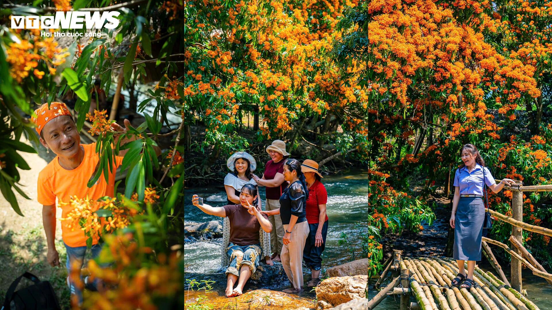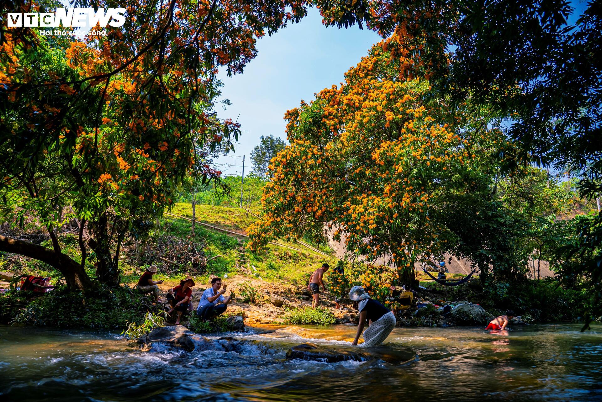 | Mỗi ngày, hàng trăm lượt khách đổ xô về 2 bên bờ suối Tà Má để chiêm ngưỡng, chụp ảnh với loài hoa rừng có vẻ đẹp độc đáo này và tận hưởng không gian mát mẻ, dòng nước mát lạnh. |