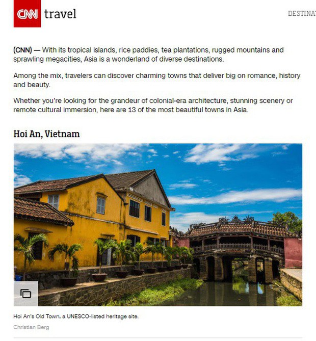 Mới đây nhất, trang CNN của Mỹ đã dành sự ưu ái khi đặt Hội An của Việt Nam ở vị trí đầu tiên trong bài viết những thành phố đẹp nhất ở châu Á.